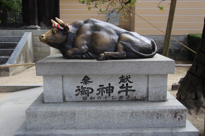 表参道の突き当りに大きな御神牛が鎮座しています。