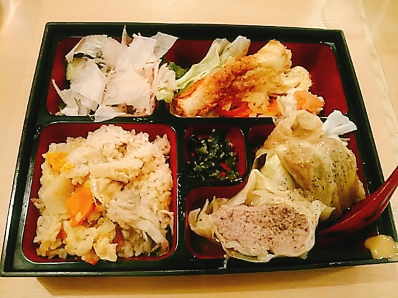 お昼は満席でした。予約していて正解でした。今回は、週替り弁当850円にしました。おかずは、汁だくのロールキャベツに鰹節タップリおひたし等でした。白ご飯は+50円で炊き込みご飯に変えられました。間違いない、安定の味でした。