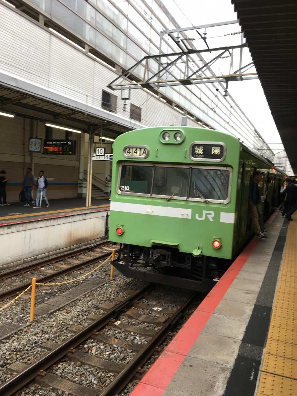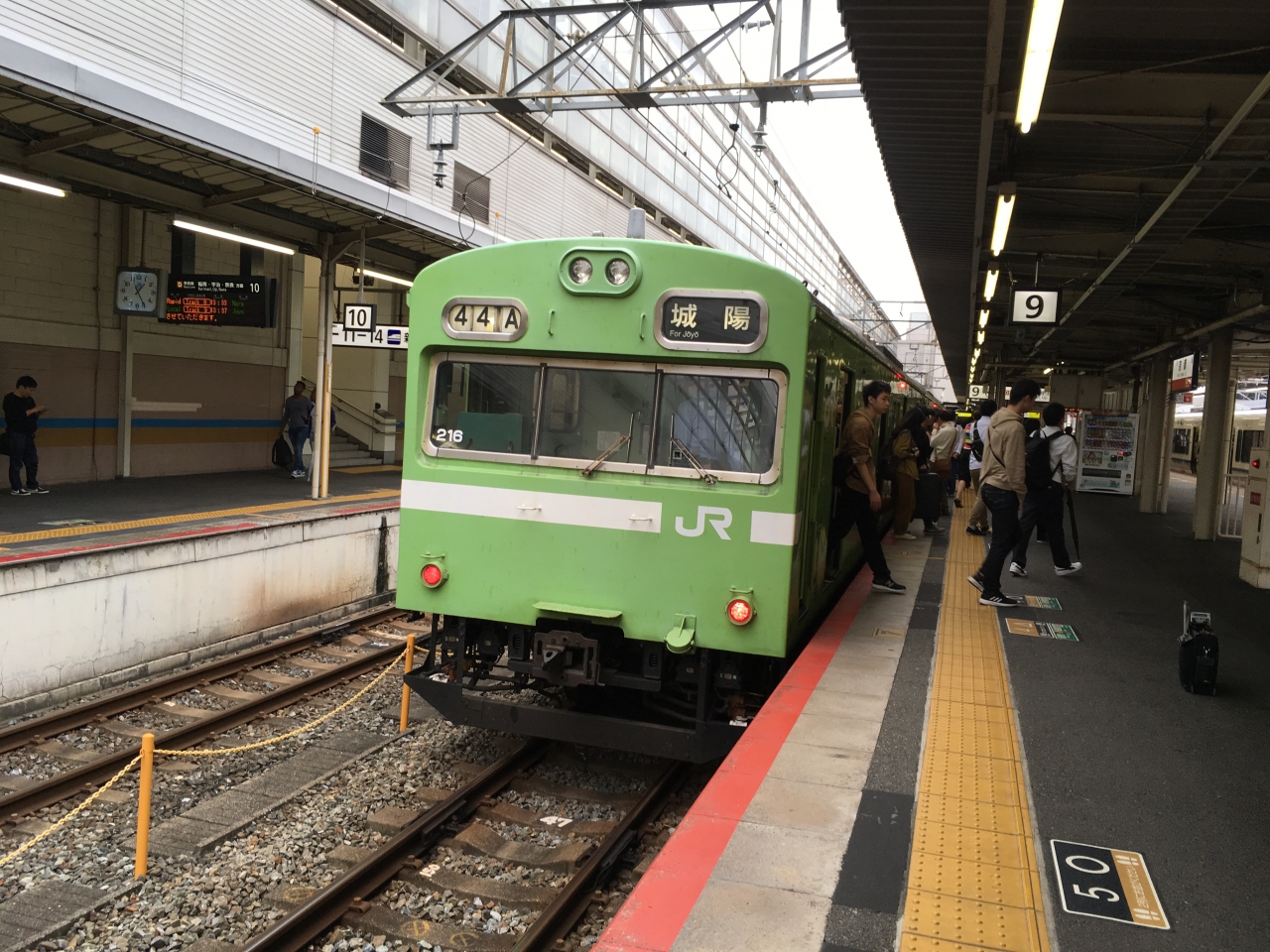 京都ー稲荷は国内、海外のお客さんと地元の方がたくさん乗降車するのでいつも混んでいます。電車好きの観点から見ればここは、国鉄ーJR発足直後の車両が一同に介しており、それだけで値打ちがあるように感じます。