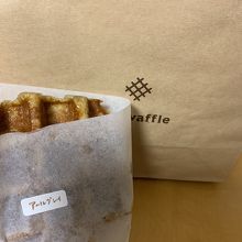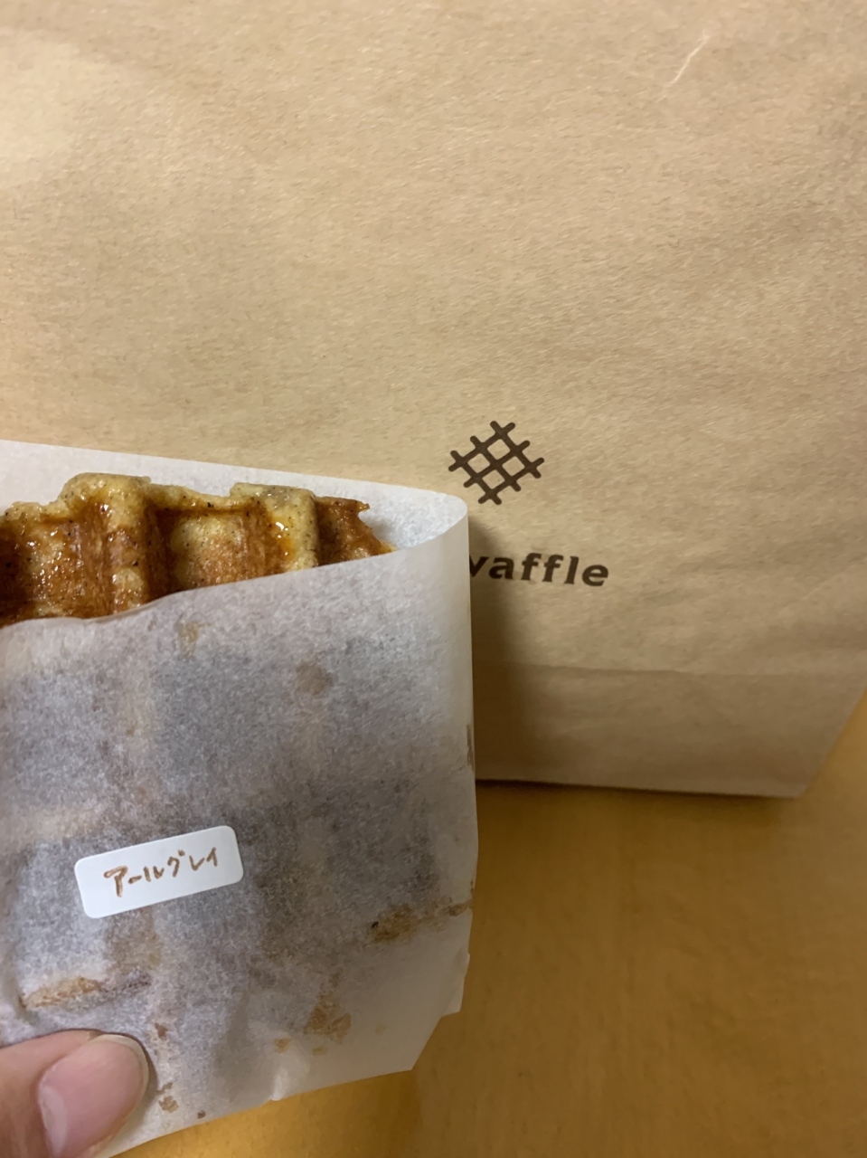 アールグレイのワッフルを持ち帰りました。イートインスペースはないので、基本テイクアウトですが、そこら辺で食べている人もいました。家ではオーブンで温めてから食べたら紅茶の香りが際立って美味しかったです。小腹を満たすにはちょうどいいサイズです。