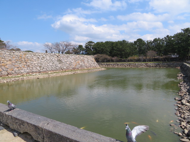 「萩城跡」の石碑まで、下の大きなお土産屋さんの「ながお」からは、結構距離がありますが、着いたとたんに、外堀のお濠の風景が飛び込んできます。かなりお濠が大きくて、開放感のある風景で、「綺麗」と思わずつぶやく美しさです。