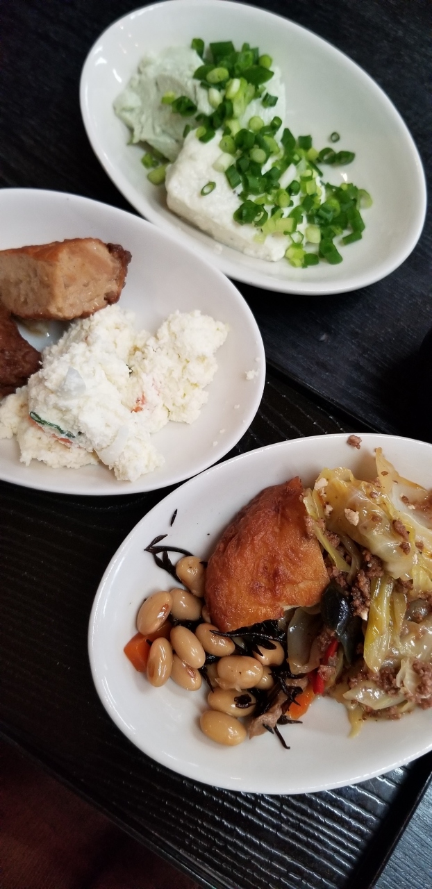 今日はランチパイキングに行ってきました。1280円でお蕎麦と、あとはバイキングです。ゆばやお豆腐のフリット、おからのサラダ、がんもの煮付け、大豆の煮付け、ぜんざい、杏仁豆腐など様々です。