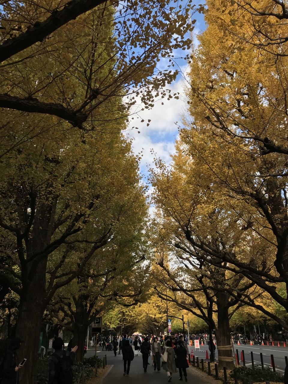 神宮外苑にあるいちょう並木は、秋の紅葉の時期には、まさに黄色の空間となり、季節が変わることを実感できます。紅葉の時期の休日は、訪れる人も多く、観光ツアーで巡るスポットにもなっていて、混雑がすごいです。なるべく混雑が少ない、午前中がオススメです。