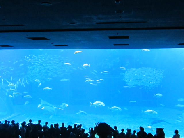 連休も終わりそこまで混雑していないだろうと読んでいましたが大外れでした。まず駐車場の段階から待ちモードに突入でした。あらかじめ入場券は用意していましたが、それでも入場待ちの列に並びご自慢の大水槽でも回転寿司のレーンのごとく横目でじんべいさんにご挨拶して退場でした。