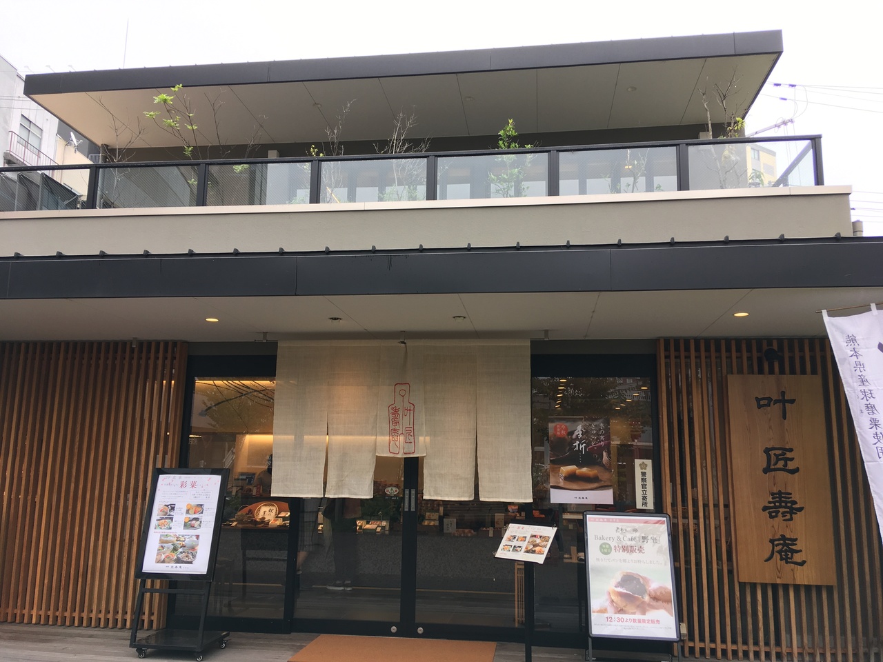 JR草津駅前にある叶匠寿庵。2階建てで一階は和菓子とパンが売っていて、2階がレストランになっています。