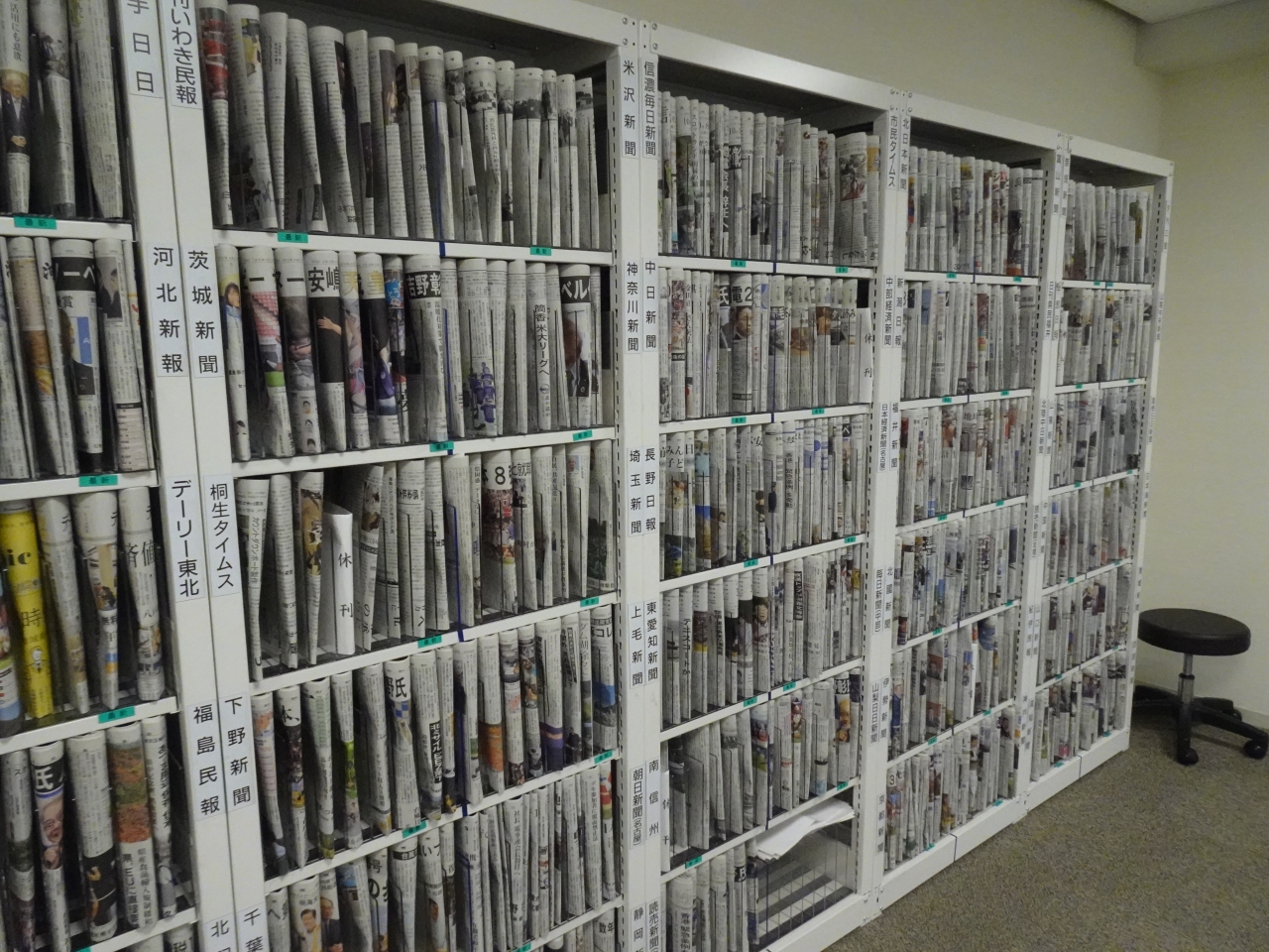 閲覧室で使用された後のちょっと古い全国各地の新聞を持ち帰ることもできます。