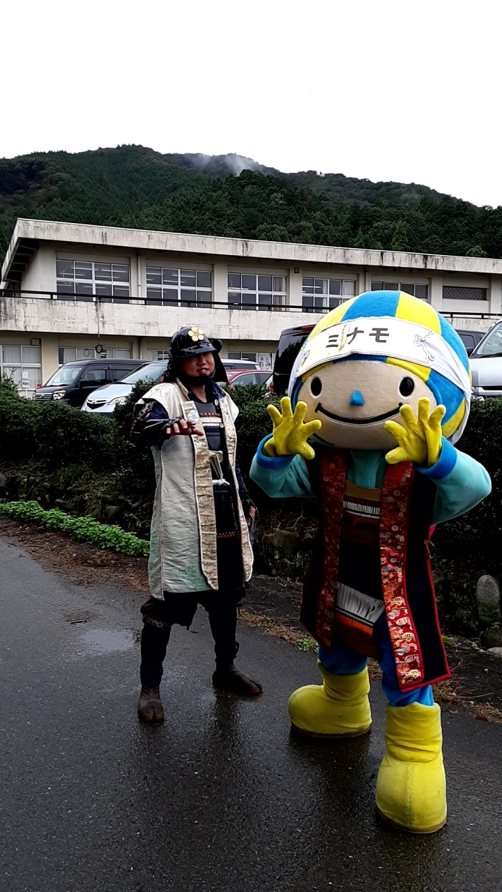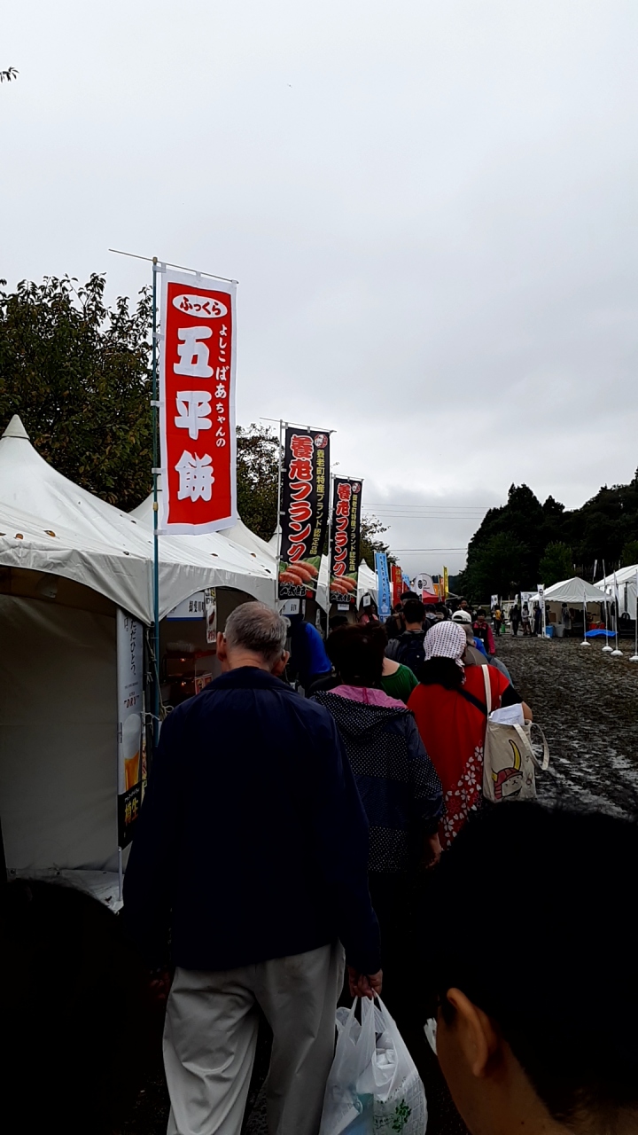 折角の機会なんで、駐車場に車を置いて、シャトルバスにて石田光成の最後の陣地近くのイベント会場へ移動。イベント会場は出店が並んでいて、ステージでは生け花のデモ等を行っていた。しかし、雨のせいで、地面はぬかるんで歩きにくい。