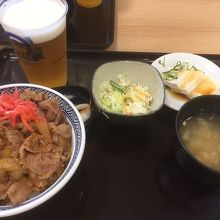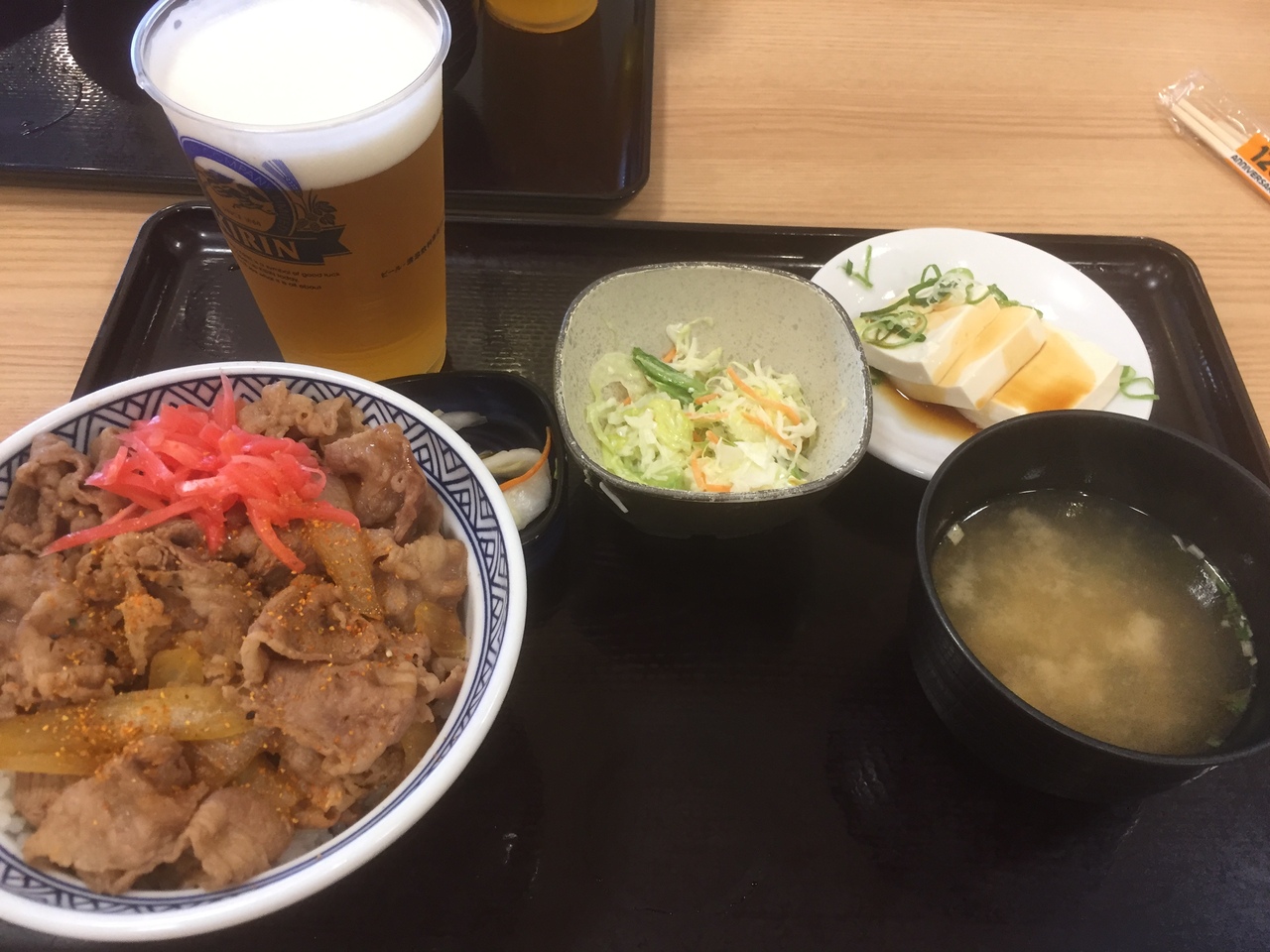 セブ旅行の際に成田で寄りました。普通の吉野家とは違い、セットメニューが中心です。空港なので仕方ないのでしょうが、単価は高めです。普通の店舗にはないラーメンのメニューまだあり、少し驚きました。この日は牛丼のセットメニューとビールを頂きました。味はいつも通り美味しかったです。