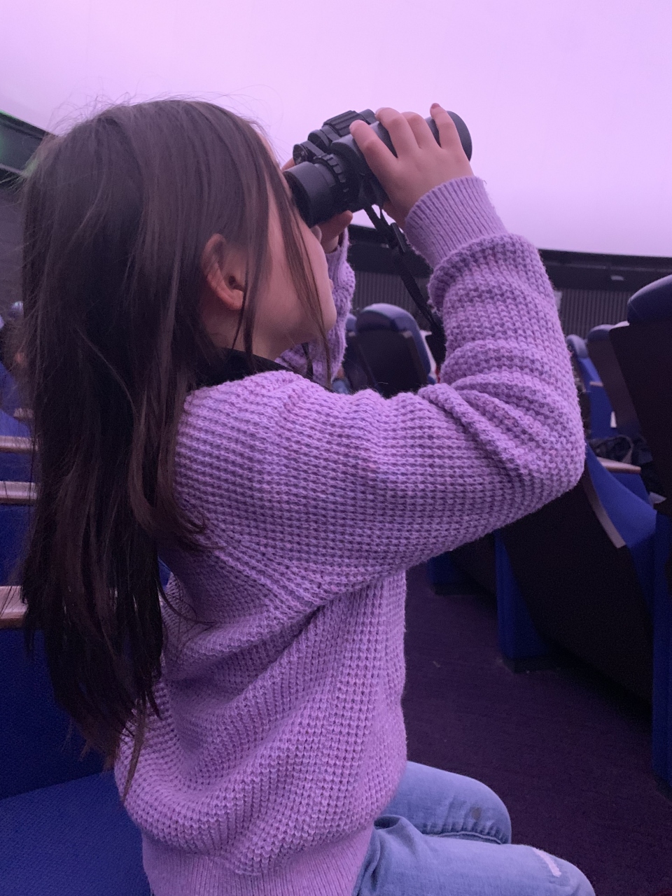 立派な双眼鏡の貸し出しがあり、実際の星観察さながら。