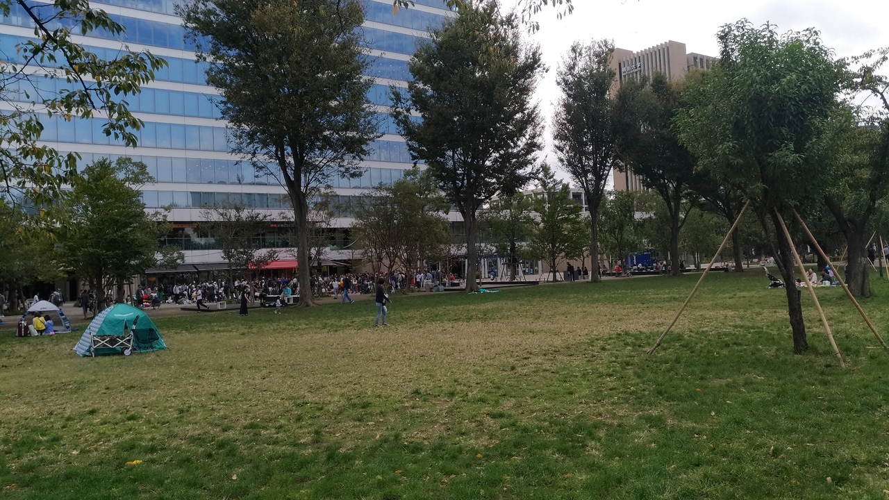 中野が再開発されて、かなりきれいになりました。こちらの公園もとてもきれいで、芝生の上をこどもたちが歩き回っていました。イベントも行われていて、たくさんの人がきていました。苗木の無料配布も行われていたので、もらってきました。