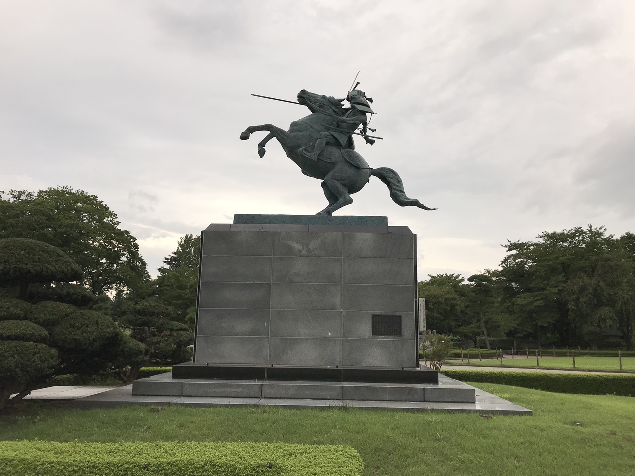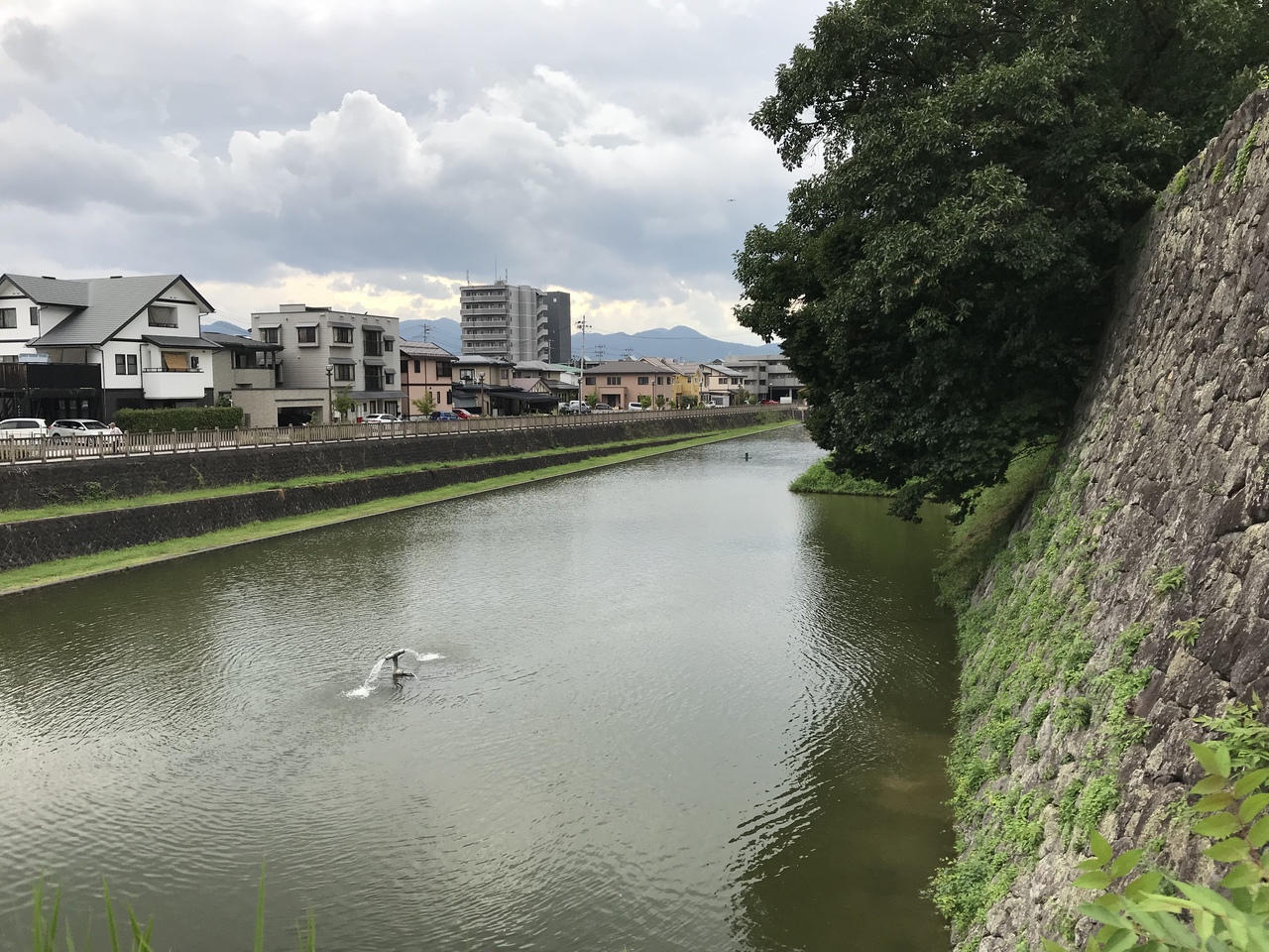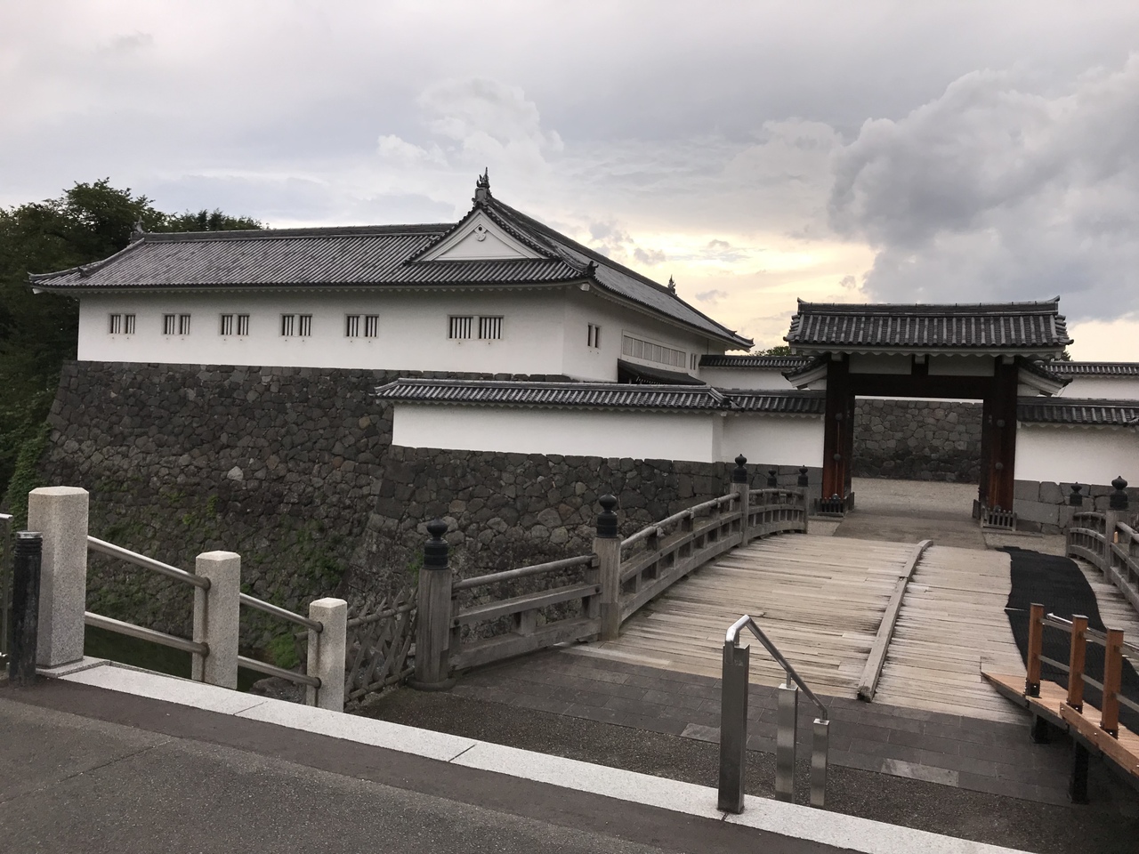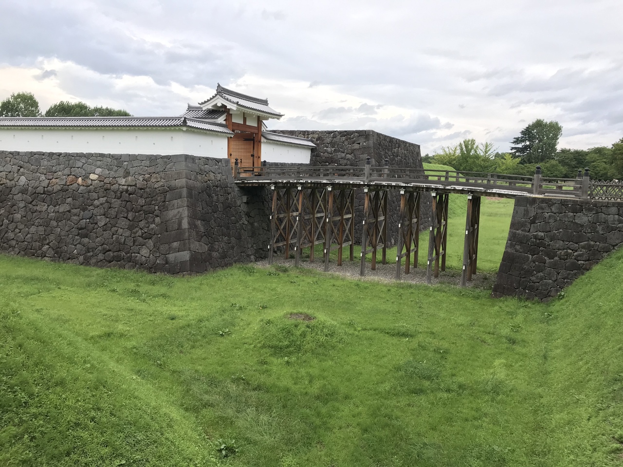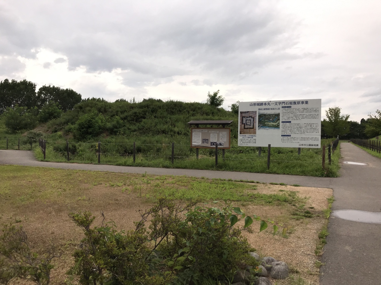 山形駅西口を出て徒歩5分程で、霞城公園の入口にあたる水堀のある山形城二ノ丸南口門跡に着く。