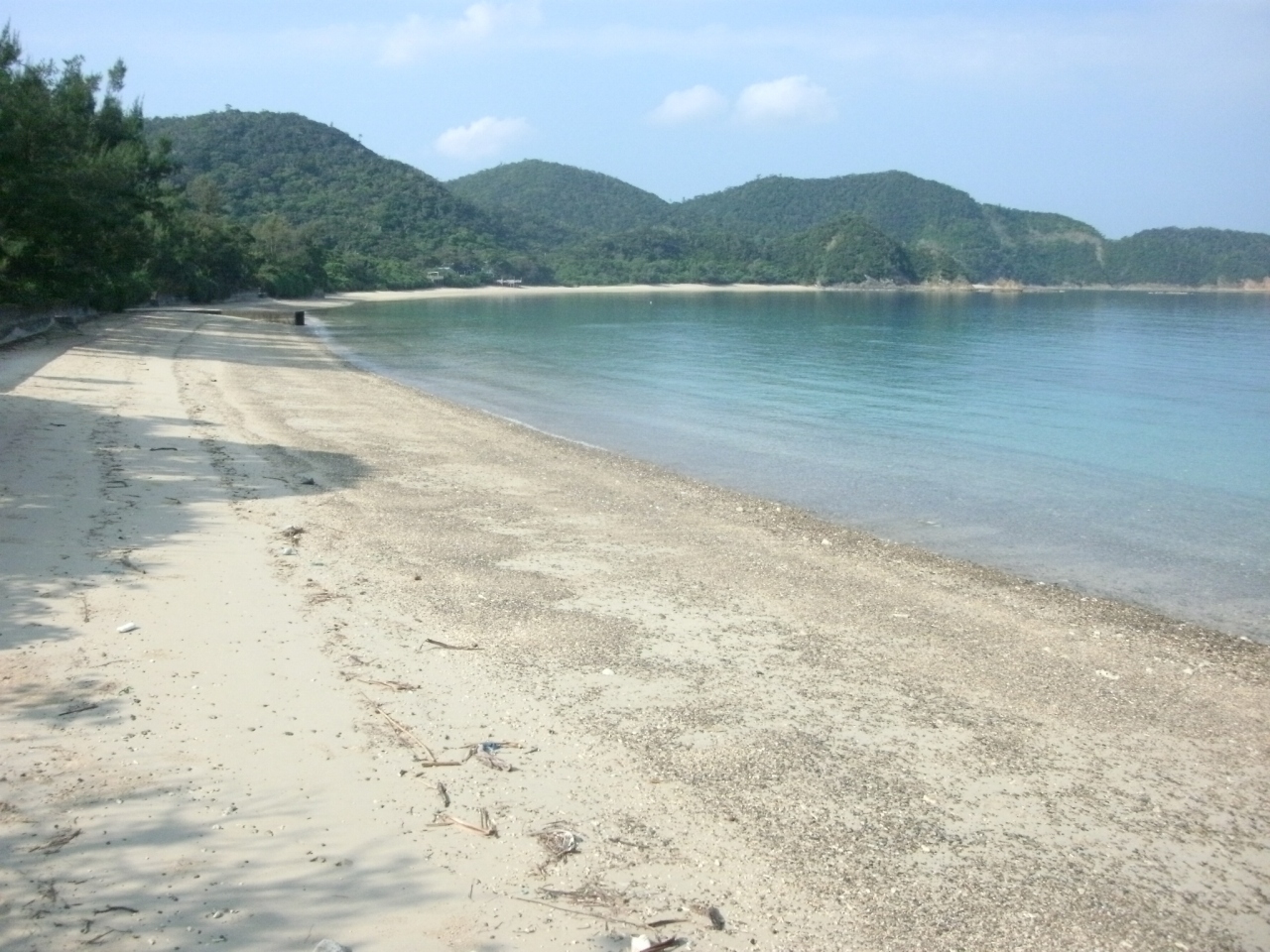 生間港から車で10分程、加計呂麻島の北岸に整備された海水浴場です。狭い大島海峡を挟んでいるためか、たいへん穏やかで、海の透明度が抜群に高く白い砂浜との色合いがとても綺麗なビーチです。10月の初めに行きましたが、奄美本島からフェリーで渡る必要がり足の便が悪いためか、シュノーケリングしている人が一人いるだけで静かでとてもいい雰囲気でした。