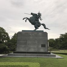 立ち上がる馬にまたがる最上義光は、今にも立ち向かってきそうな感じかする像であった。