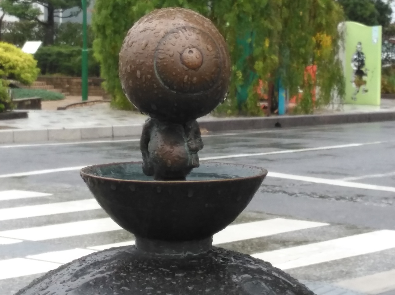 子どもの頃から馴染み深いゲゲゲの鬼太郎、雨で人影が疎らで寂しげでしたが面白い街を満喫。バスや電車と絵が描いてあるのも見る事ができ大満足。歩き疲れパン屋さんで休憩、一反もめんのパイと珈琲で癒されました。海沿いに観光バスの駐車場と綺麗なトイレがあり、向かい側に一般車の大きな駐車場があり散策に便利でした。