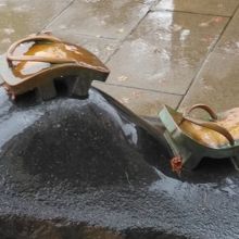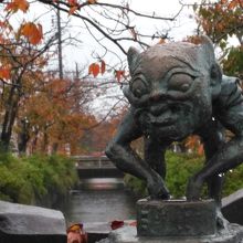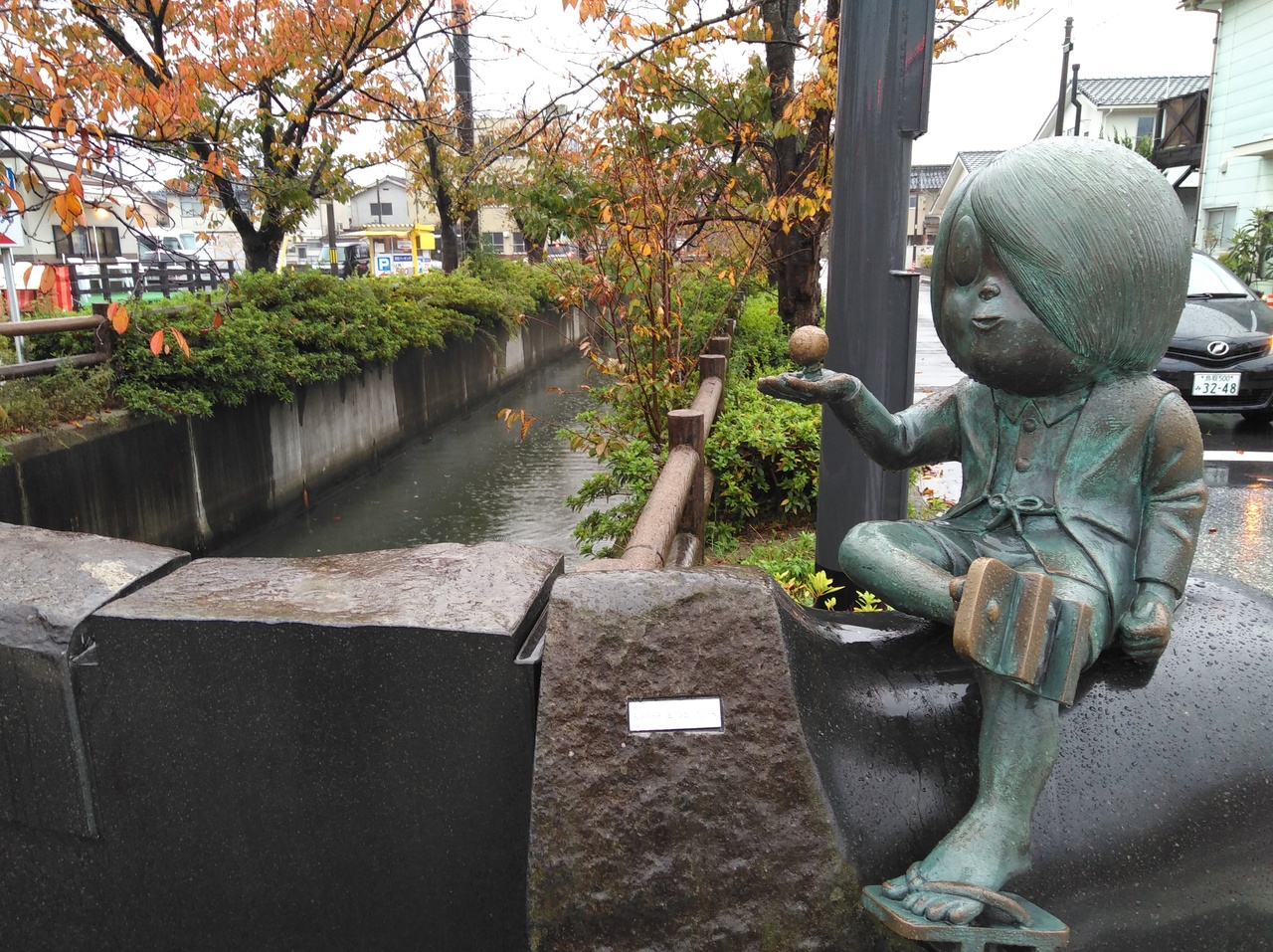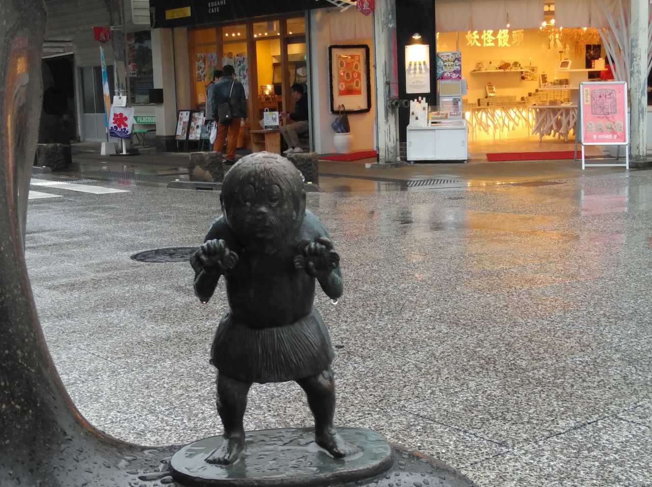 生憎の雨でしたが、沢山の妖怪に出会え楽しい散策。通りは昭和の懐かしい雰囲気のお店からオシャレで洗練されたお土産屋もあります。アーケードになっている所もあり、傘をささなくても大丈夫な場所もありました。