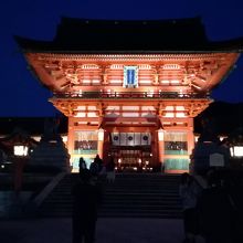 伏見稲荷大社の本殿は国の重要文化財建造物に指定されています。明応8年(1499)再興されました。最寄りの駅はJR稲荷駅で駅下車すぐそして京阪電車は伏見稲荷駅下車徒歩約5分となっています。JR稲荷駅は京都駅から二駅とアクセス抜群ですが、それゆえに土日は相当の観光客が訪れます。
