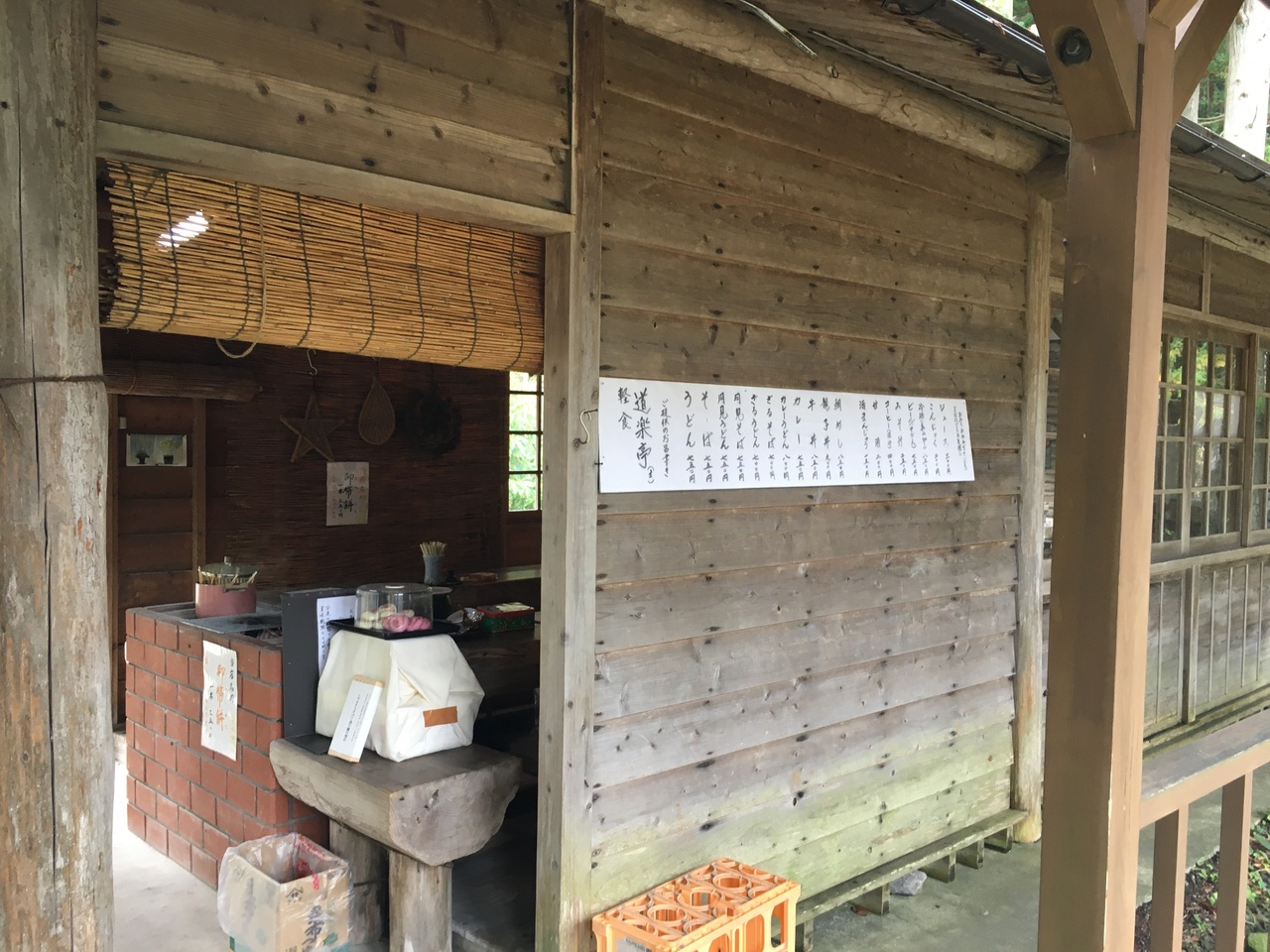 メニューはうどん、そば、月見うどん、月見そば、ざるうどん、ざるそば、カレーうどん、カレー、牛丼、親子丼、鯛めし、酒まんじゅう、甘酒、コーヒー(温 冷)、みそ汁、ビール(中びん)、冷酒、こんにゃく、ジュースです。
