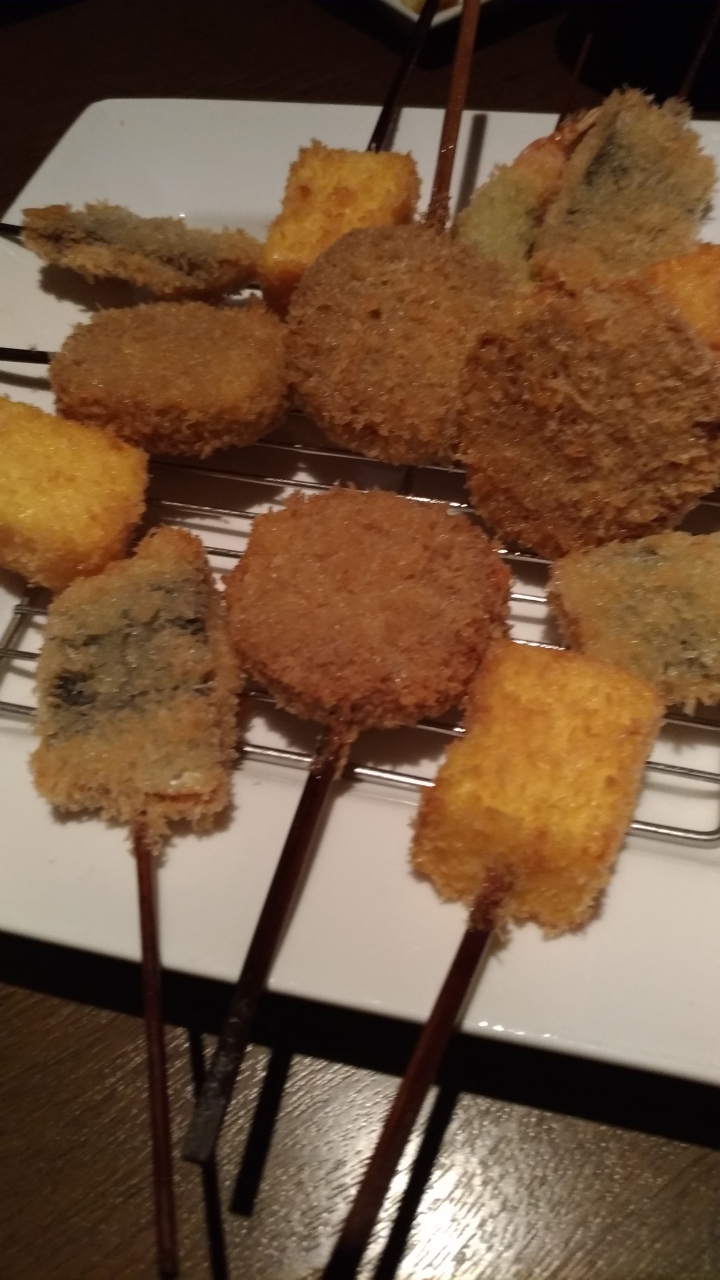 ランチは1つのみです。コースで1000円で、税別のため1100円。10月から1100円になってからいってきました。いつもお野菜もあったのですが、今回はお肉や魚が中心でした。コロッケとかもあって、串揚げいろいろたべれて楽しいです。ごはんおかわり無料