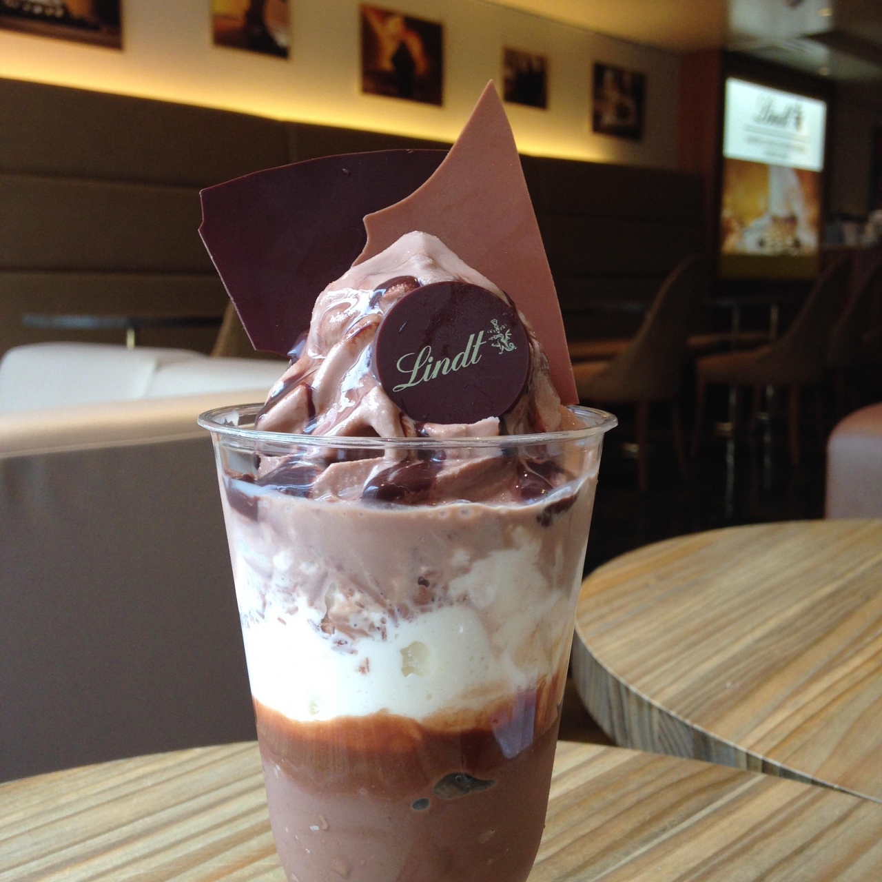 キャラメルソースらしきねっとりとしたクリームがカップの側面に絞られ、チョコレートソースと合わさると濃厚で美味。
