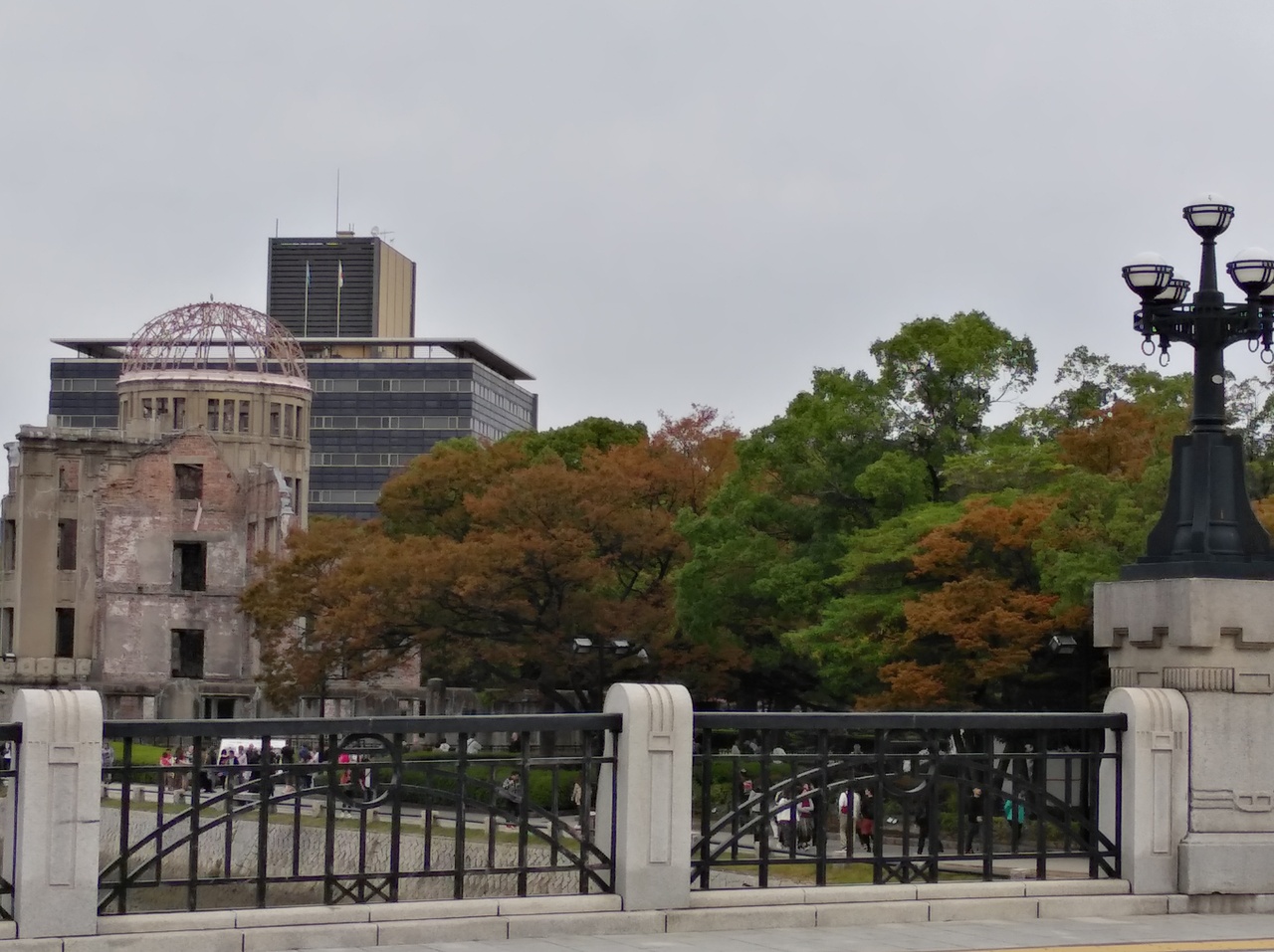 原爆ドーム、資料館、平和の鐘、数々のモニュメントがあり広大な敷地です。紅葉が始まった美しい公園内は何処をみても綺麗に整備され平和への願いを強く感じる場所でした。