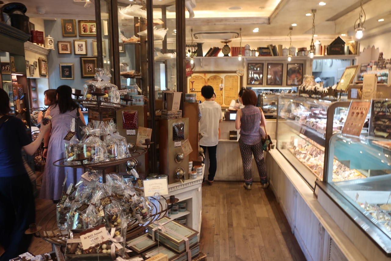京都祇園の白川が流れる川端通りぞいにあるチョコレート専門店です。ニューヨーク・ブルックリンにあるマルべりの姉妹店だそうです。店内外はアンティーク調の雰囲気で高級感があり、板チョコ、チョコボール等沢山の種類のチョコレートが所狭しと並びます。嬉しいのは、どれもこれも試食げできること。自分の好みのチョコを確認して買うことが出来るのは嬉しいです。