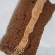 ココア風味のケーキ生地で、チョコレートクリームを挟んでいる。