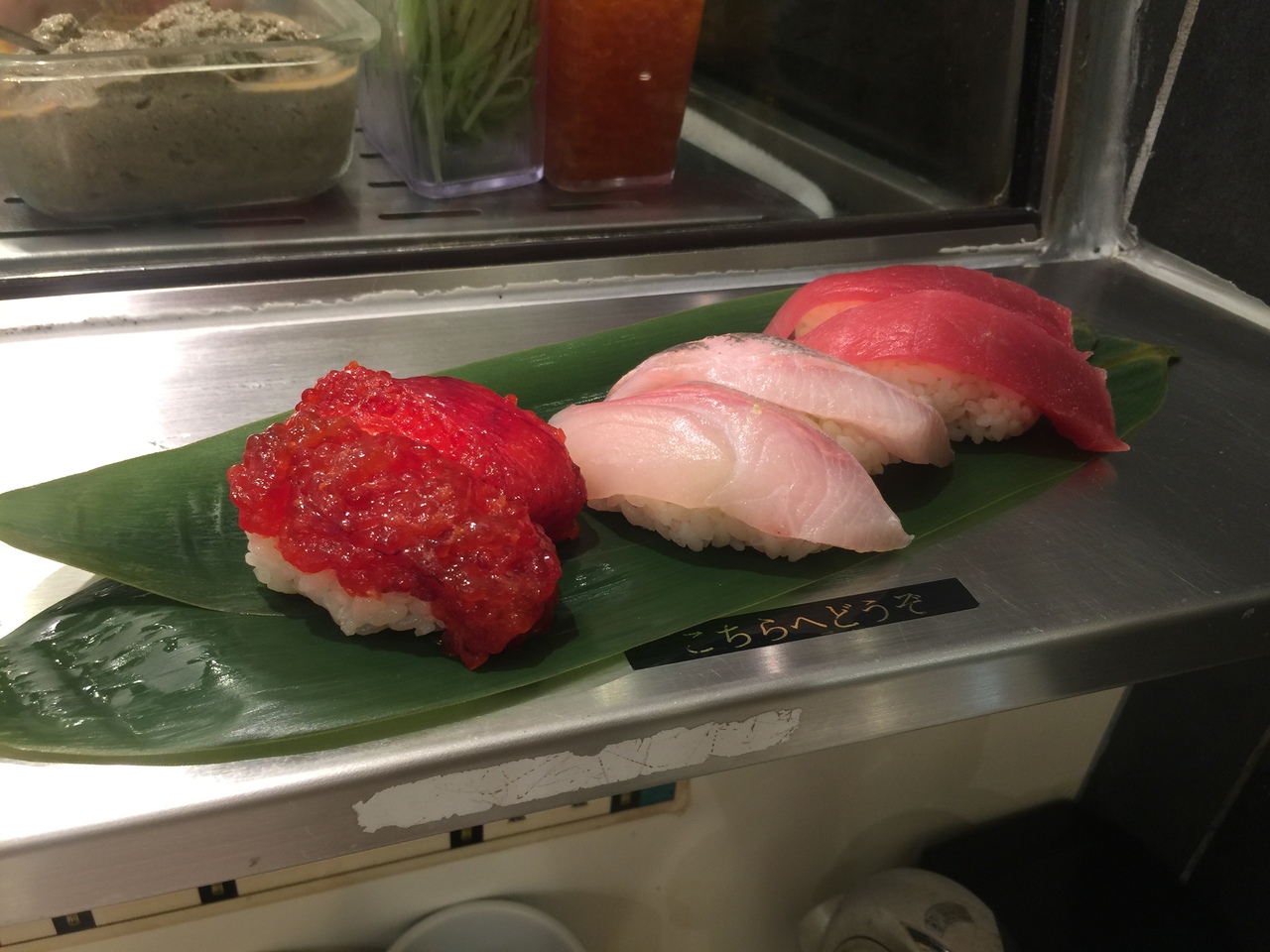 食べたのは握り寿司10貫!すじこ、カンパチ、まぐろ、蟹味噌、つぶ貝!全部2貫ずつ、1,265円でした。