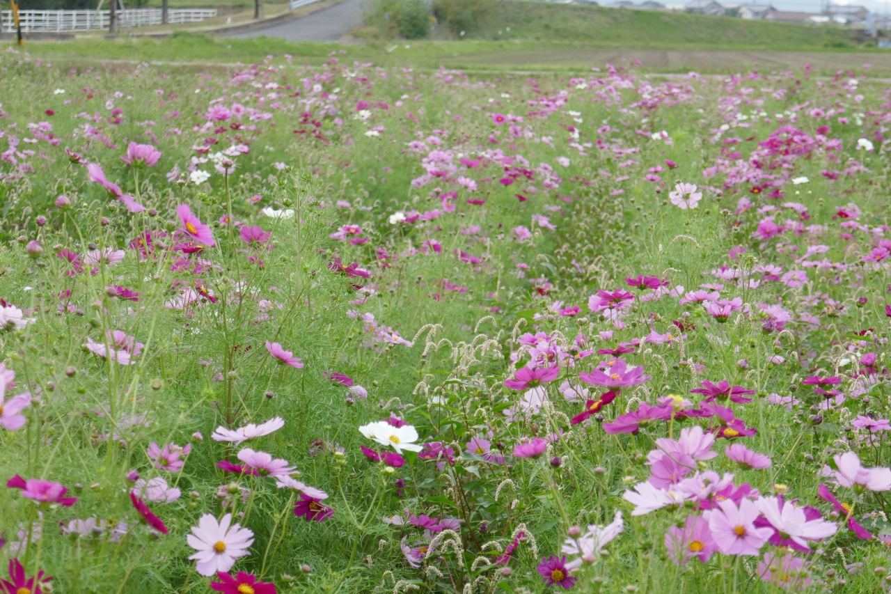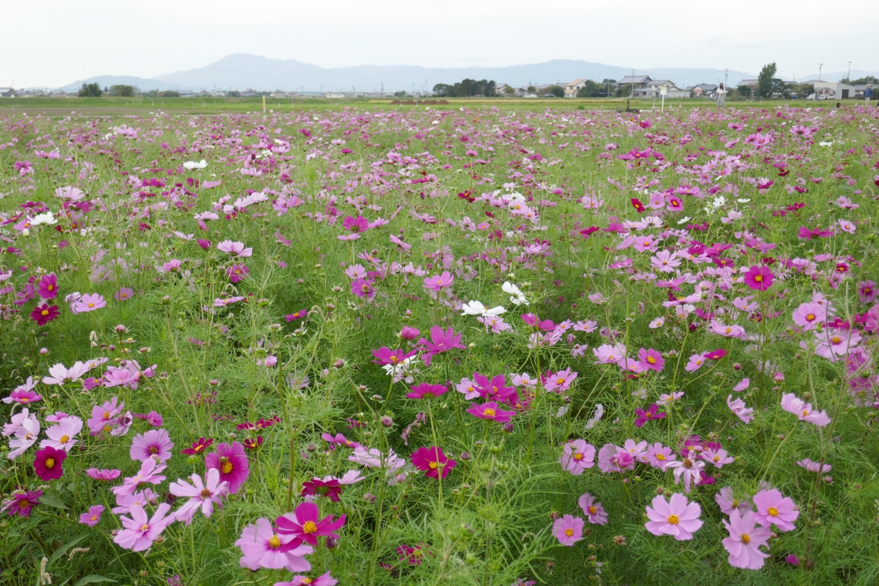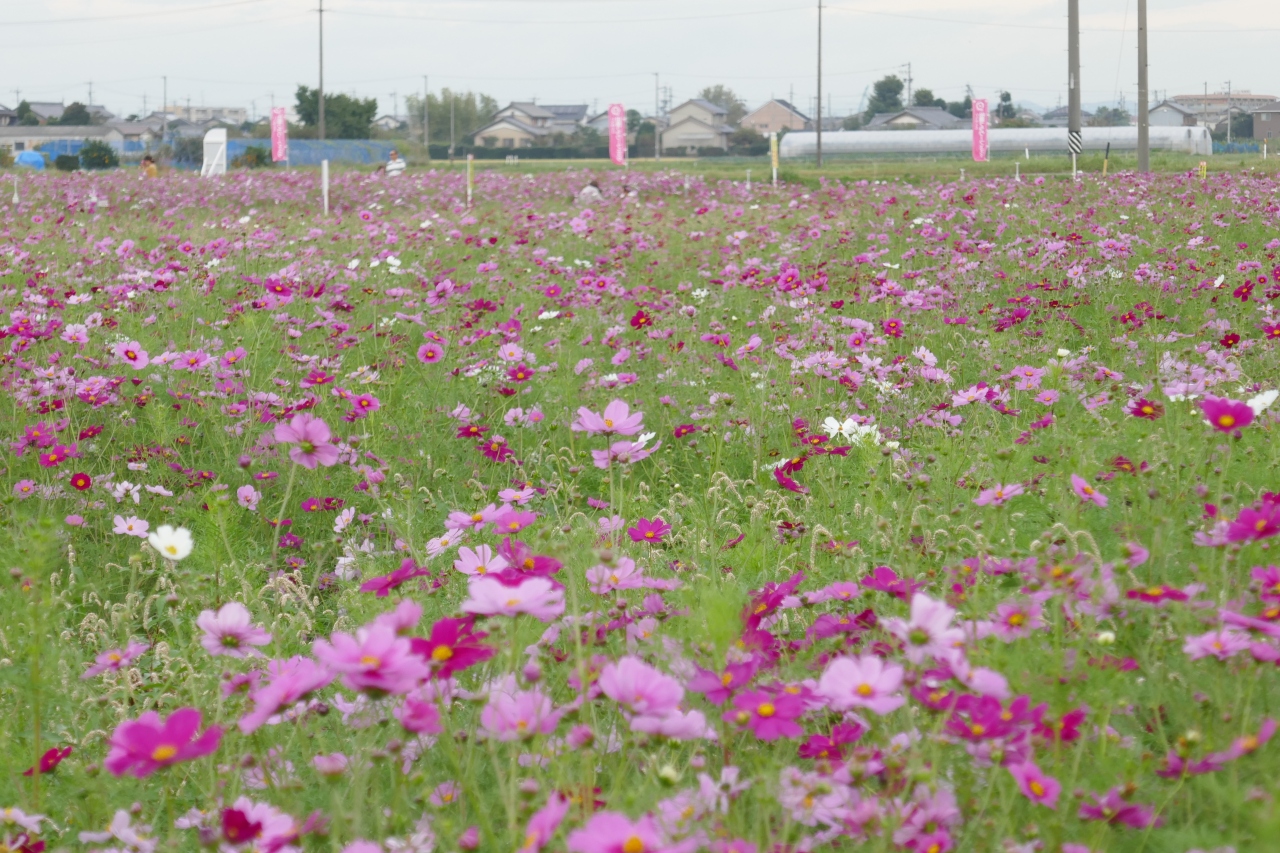 「東海最大級のピンクの園」白・薄ピンク・濃いピンクの3種類1200万本有り、