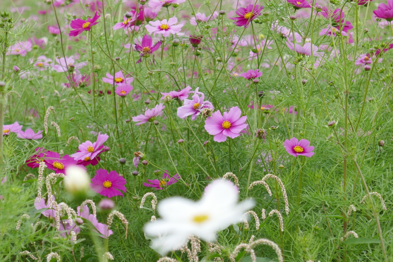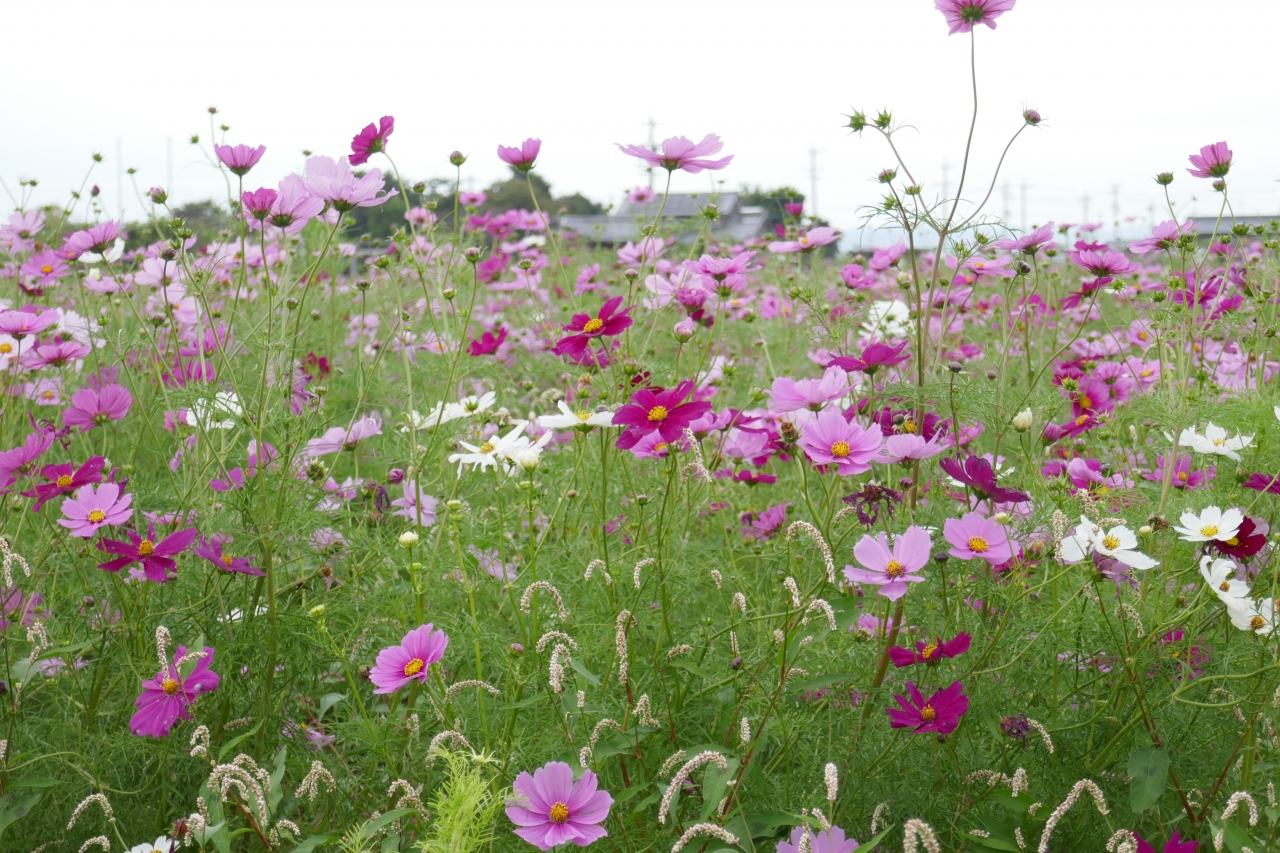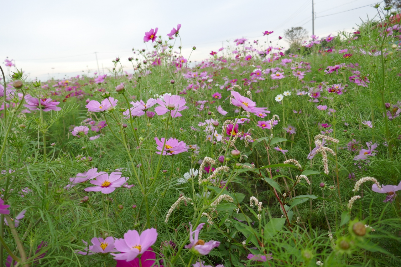 「東海最大級のピンクの園」白・薄ピンク・濃いピンクの3種類1200万本有り、