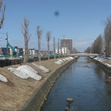 私はいつもこの並木としては南限となる中島橋からの景色を主として眺めていますが、2年前の春に、その一部が豪快に剪定された姿を眺めていたので、その後が気になっていましたが、美しく葉が茂っていて、今後の成長も楽しみになりました。