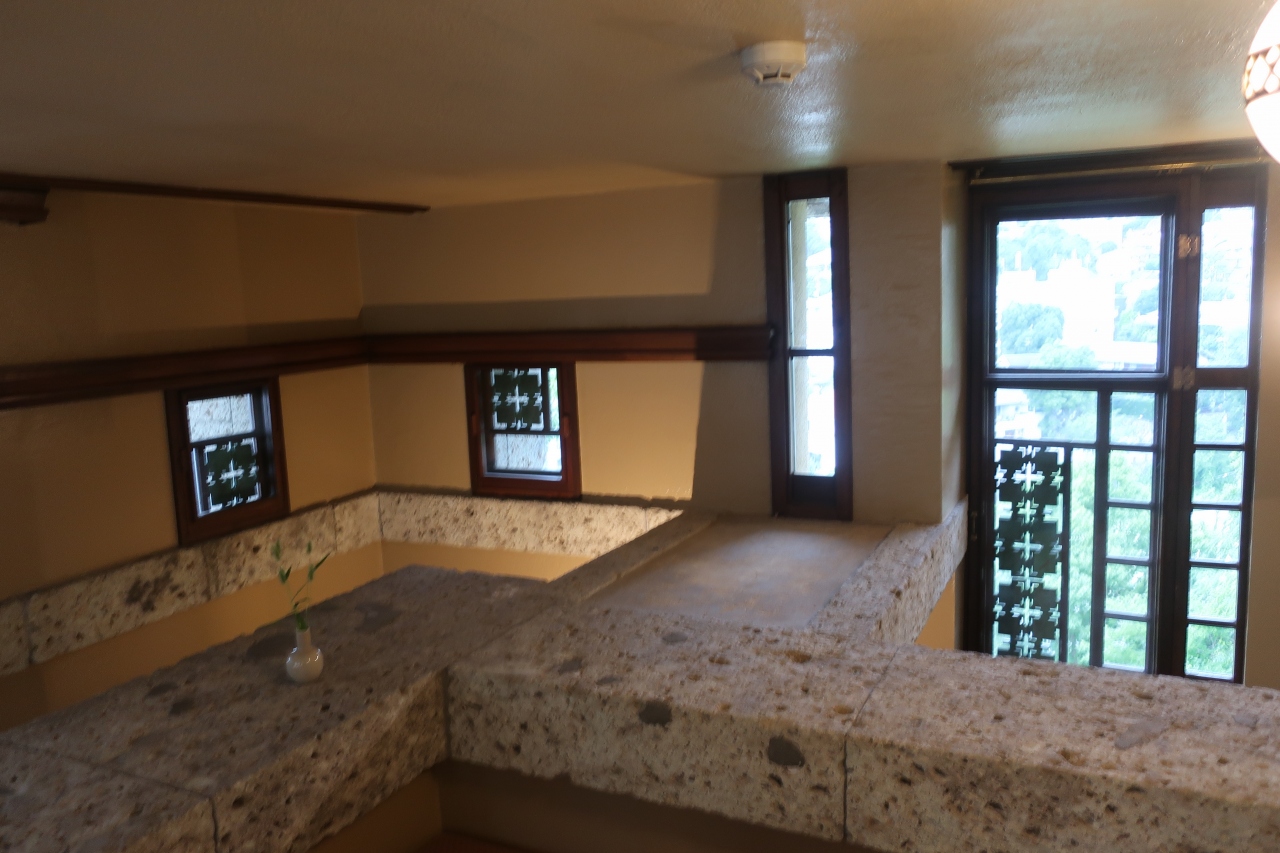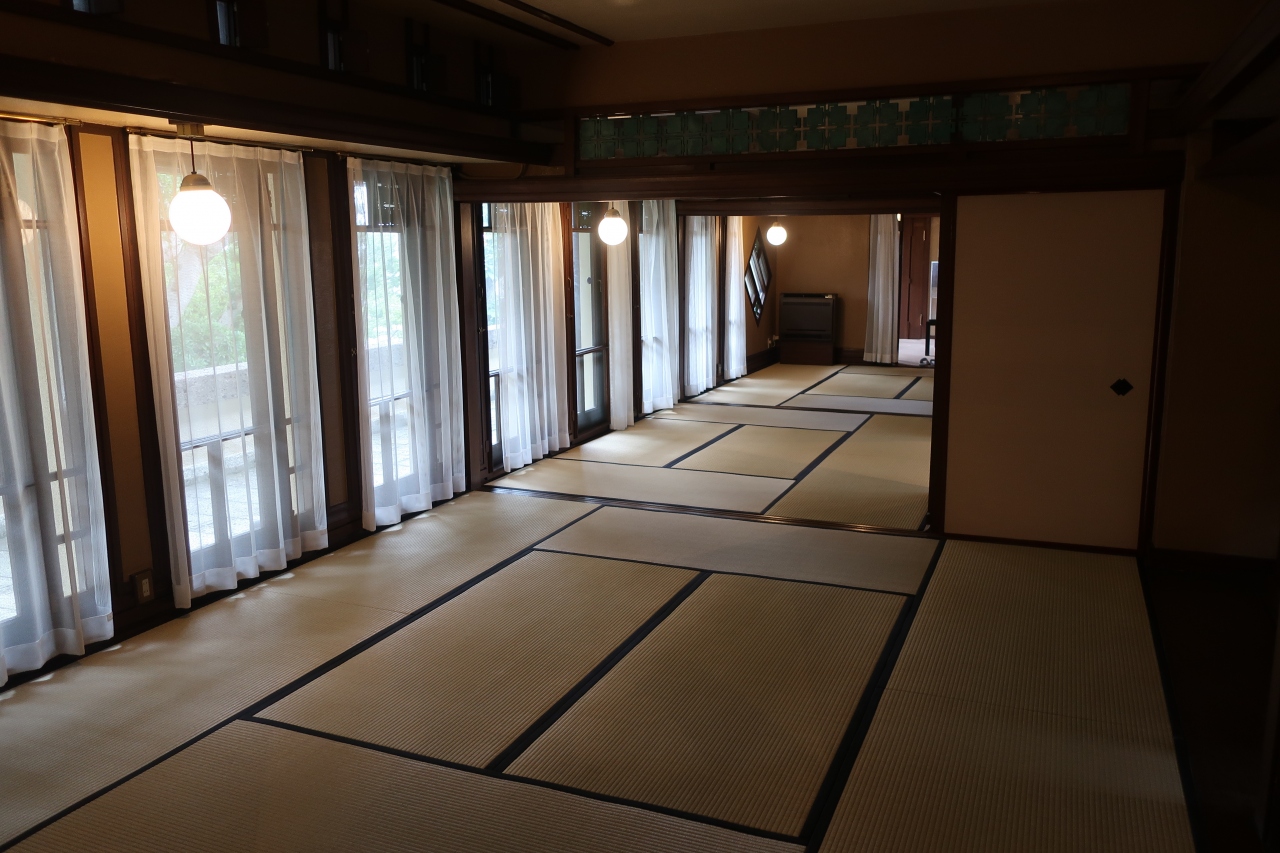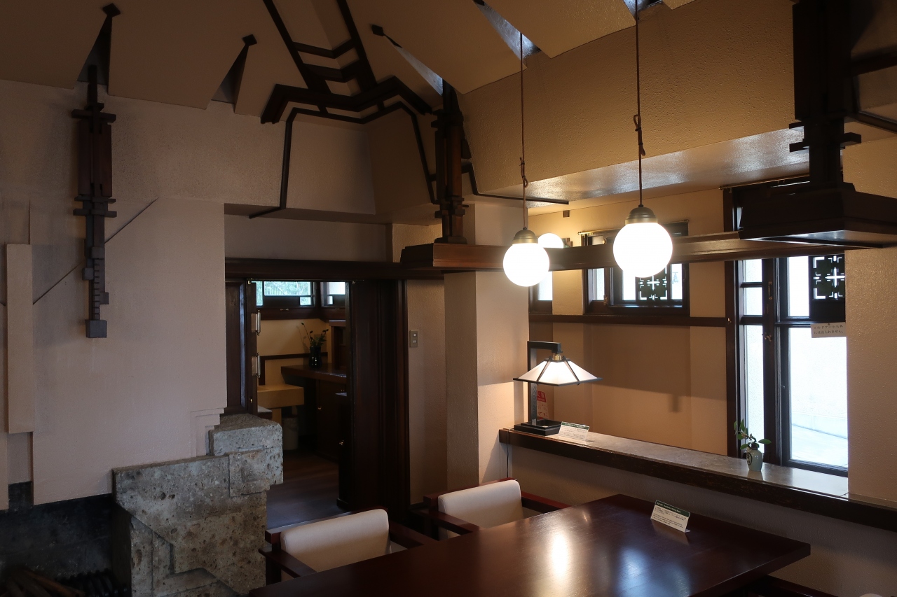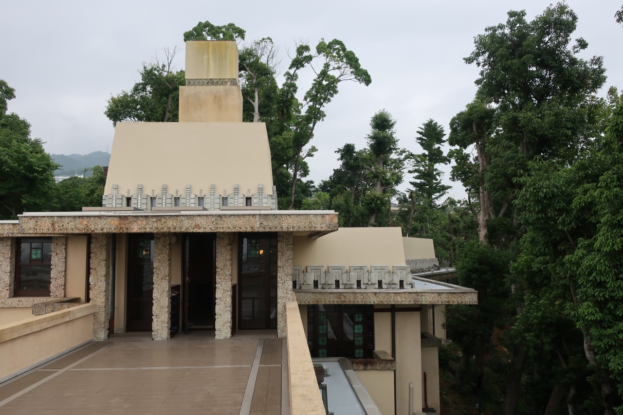 芦屋川駅から六甲山方面に向かうライト坂の途中に現在はヨドコウ迎賓館として使われている旧山邑邸があります。旧帝国ホテルの設計でしられる近代建築の巨匠フランクロイド・ライトが灘の酒造家 山邑氏のために設計した建物です。4階建て鉄筋コンクリート造の建物には大理石、小窓、天窓など随所にライトらしい装飾が施されており見応えがあります。特にライト設計の建物には珍しい和室があるのには驚かされました。