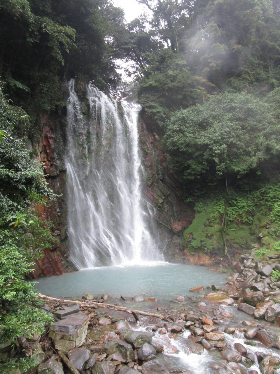 幹線道路から分かれた道をしばらく走ると、滝と小さな駐車場(スペース)があります。車でのアクセス性はとても良いです。滝はまずまずの規模ですが、温泉の成分が混じっているらしく、滝壺から湯気が出ており、少し硫黄の臭いがするので珍しかったです。