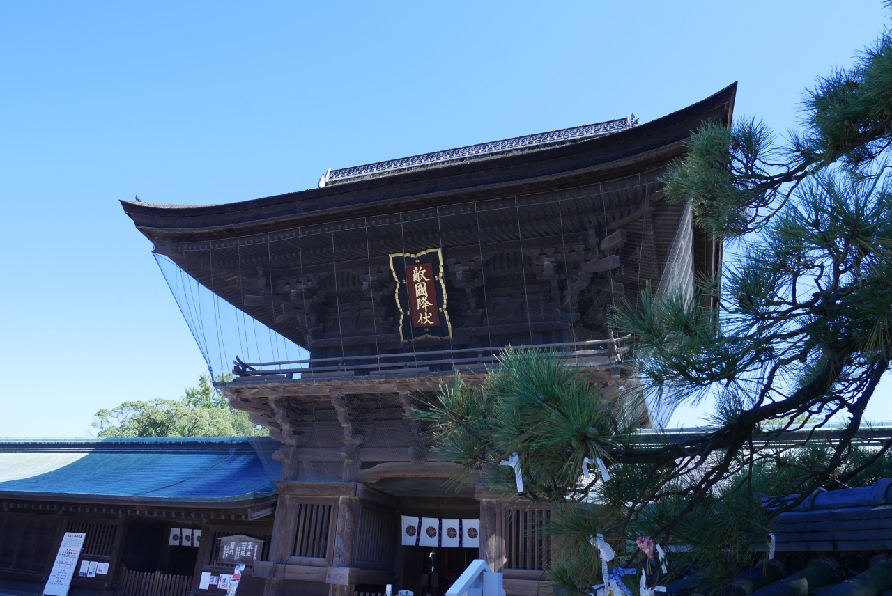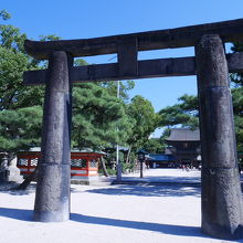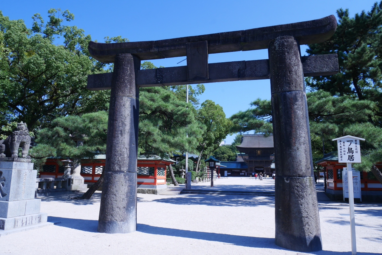 地下鉄の箱崎宮駅から徒歩すぐです。駅から広い参道を進んでいくと、江戸初期に黒田長政が建立したといわれる重要文化財の一の鳥居があります。境内を進むと安土桃山時代に建立された立派な楼門があります。扁額には、元寇の際に亀山天皇が祈願した「敵国降伏」の文字が刻まれています。また、境内には亀山上皇の巨大な木造があります。三大八幡宮の一つらしく立派な神社でした。