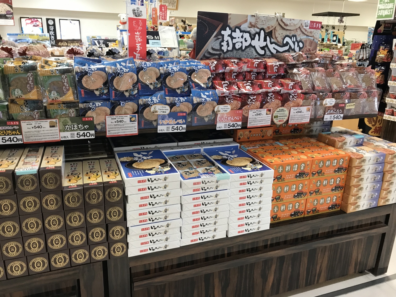 お土産屋さんは割と品揃えが豊富で、中でも南部せんべいのコーナーは大きく、すごく種類が沢山あって驚きでした