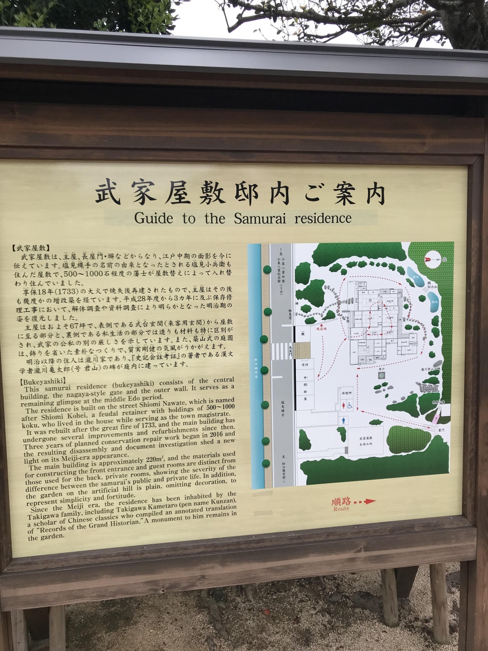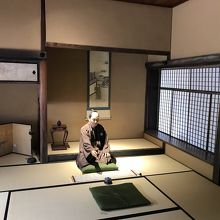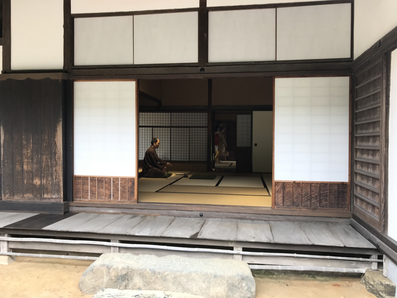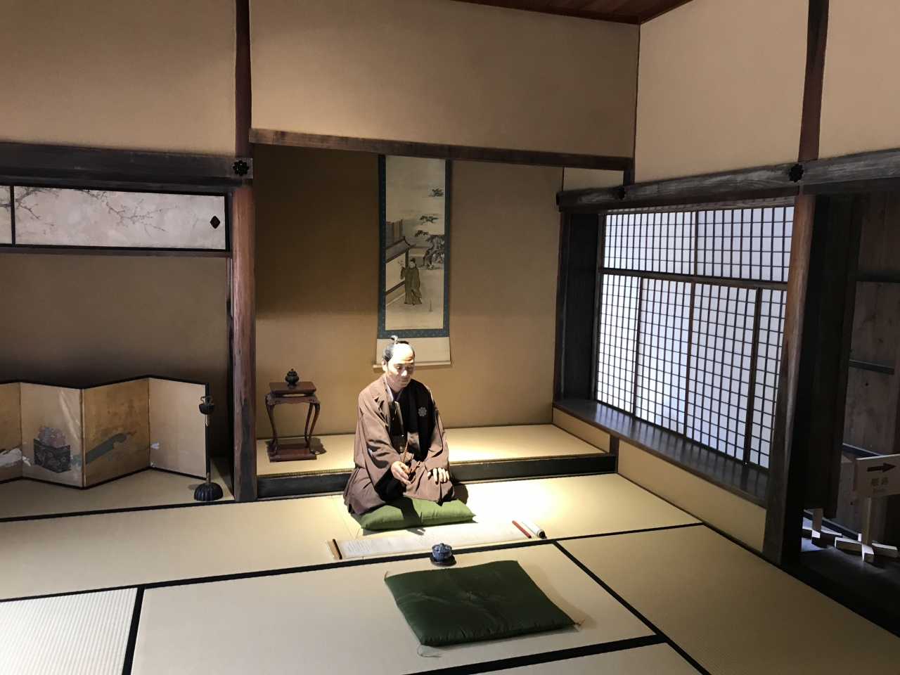 500石から1000石程度の藩士が屋敷替えによって入れ替わり住んでいたそうです。屋敷内には、本物そっくりの形をした武士の人形が置かれていて、最初はちょっと驚きました。台所やトイレなどもあり、当時の生活ぶりを偲ぶことができます。