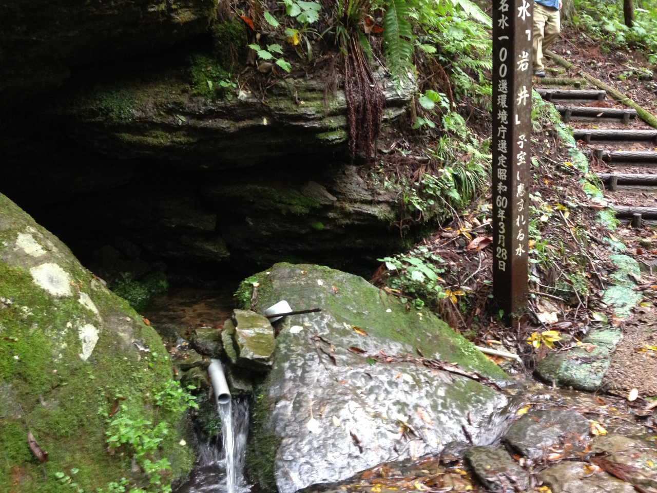 無料駐車場の近くに有る、登り口の長い階段を上がっていきます。途中には”岩井の名水”が飲めるようになっていてピリッとした硬水を飲むと元気が出ました。滝に到着すると滝の裏側にも周れてマイナスイオンたっぷりの場所です。