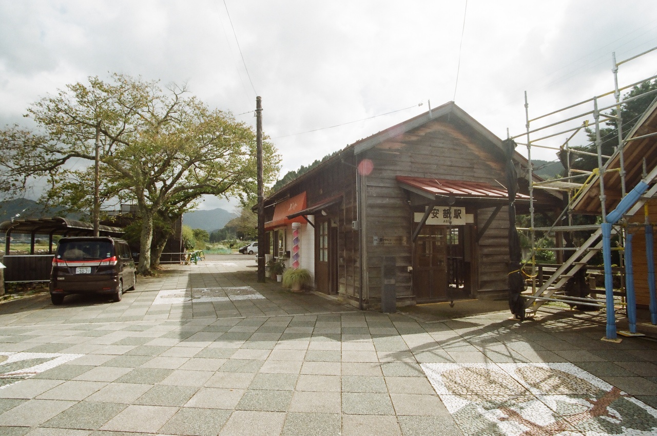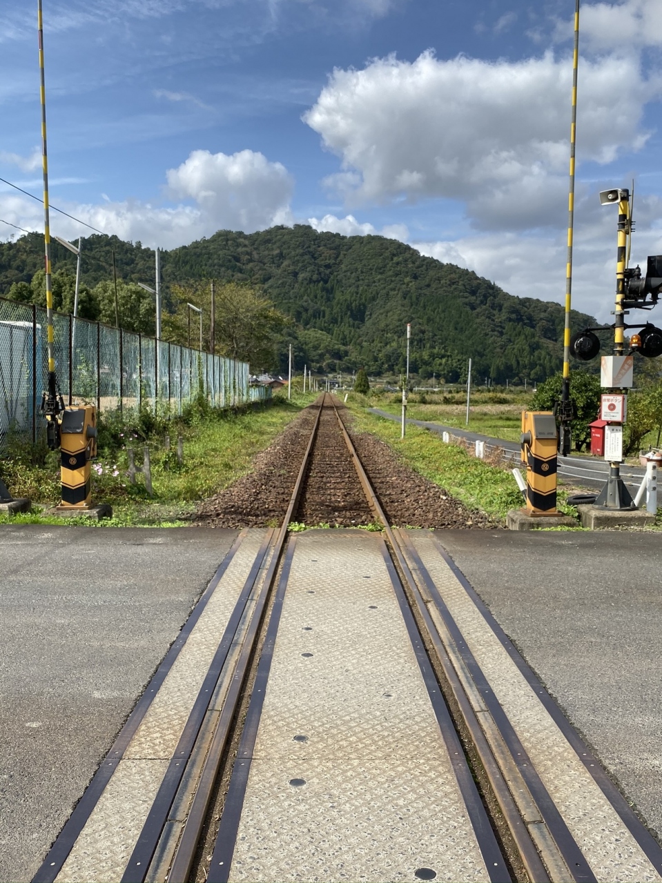 業務委託はされている駅ですが人影は見当たりません。この〝安部駅〟という名称は駅ができた際に所在した安部村からと言う説もありますが、国鉄若桜線の開通時に駅を作る際にホームの場所と駅名で集落間で揉めた経緯があると書かれていました。日下部と安井宿の集落間の争いから一文字ずつ取って名付けたともありますが、若桜線開通後1年2ヶ月後の開業であることから満更嘘でもない理由のようにも思えます。昭和7(1932)年に出来た駅舎は国の有形文化財に指定されているものであり、以前〝おとこはつらいよ〟シリーズのロケ地ともなったところでもあります。今では田舎のローカル線典型的な真っ直ぐのレールが若桜・郡家方面に伸びているだけのものにはなっています。