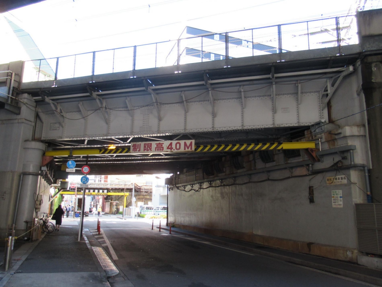 と言っても、この辺りは、線路と道路が斜めに交差している上、架道橋の西側下に一八通りと交差する道路があるので架道橋がV字型という珍しい形になっています。