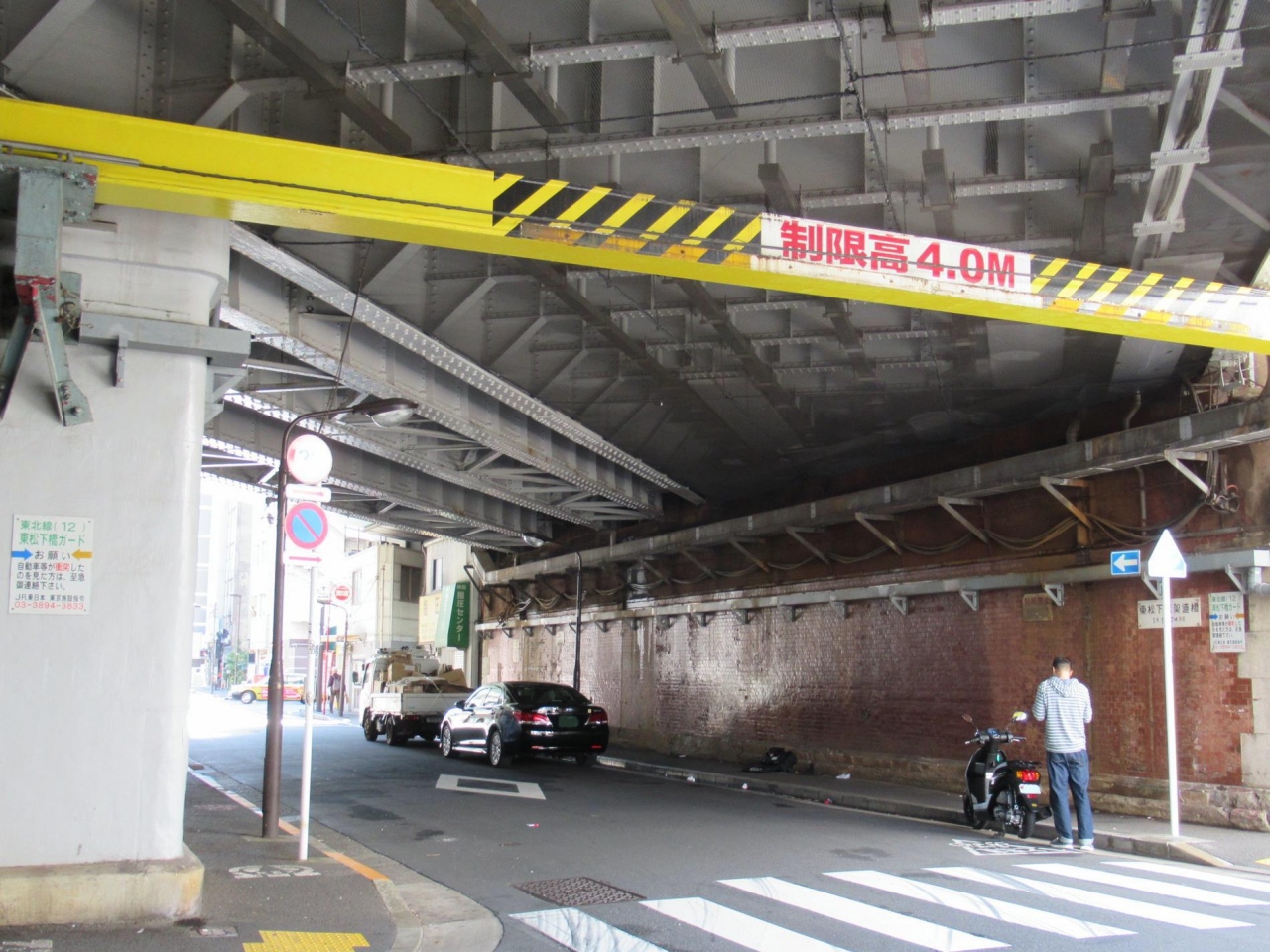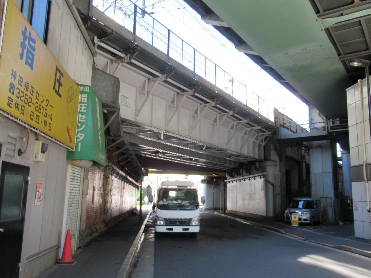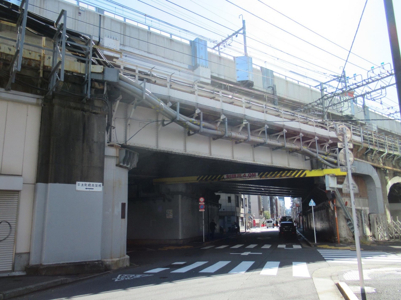 JR神田駅と秋葉原駅間には多くの架道橋 (ガード) や高架橋があり、今回見歩くことにした一つがここ 東松下橋 架道橋 で、JR神田駅と秋葉原駅の中間辺りを東西に走る幹線道路の靖国通りの一本神田駅 (南) 側の一八通りに架かっています。
