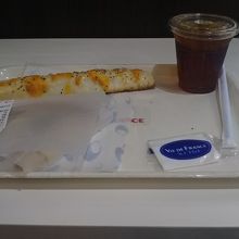 小腹が空いたので、入りました。出来立てのパンとコーヒーをセルフサービス式で注文しました。ピザマルゲリータを注文し、フワフワの美味しさでした。