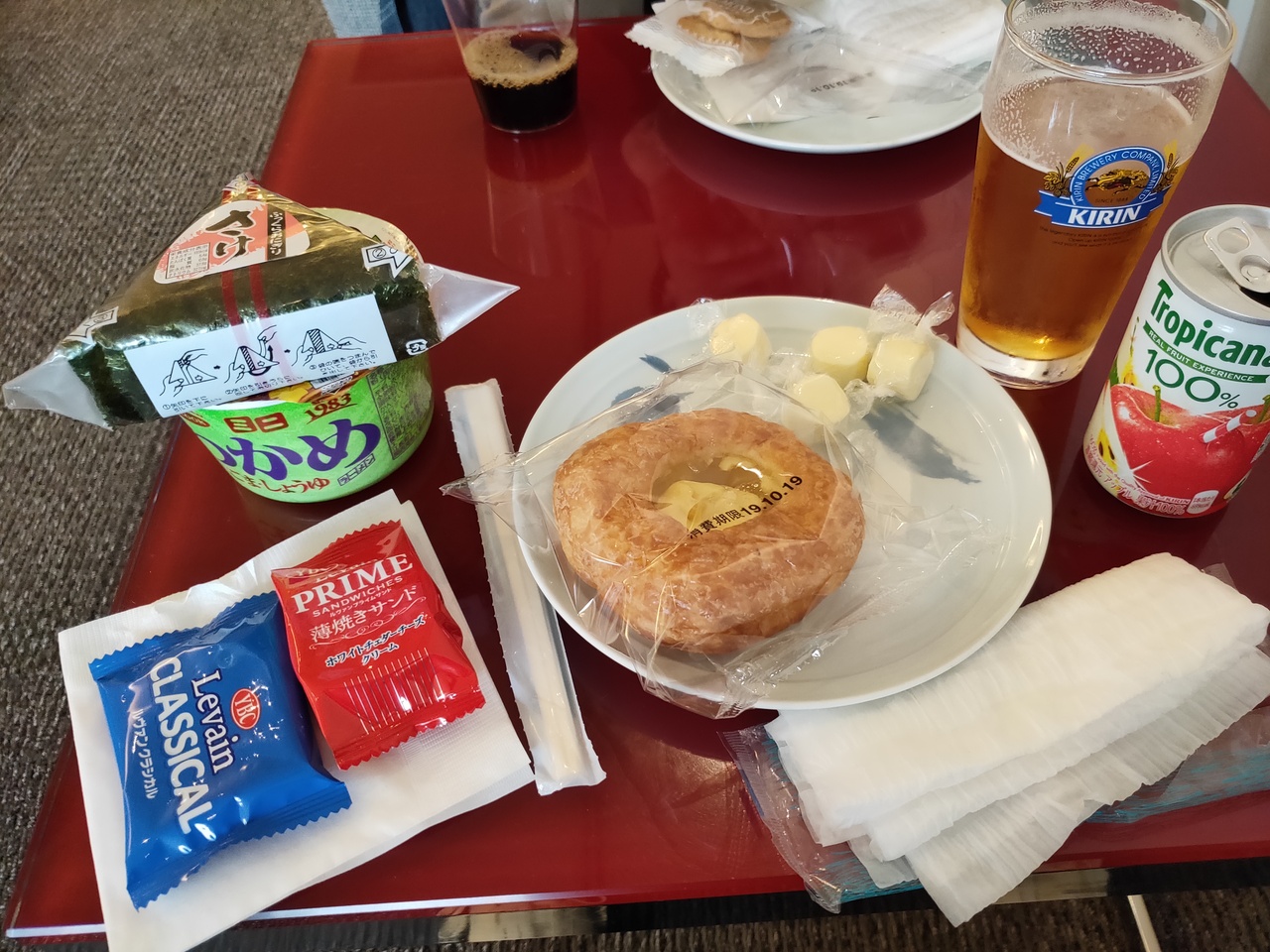 混雑するとカード会員優先でプライオリティパスは断られるとのこと。我々の入室時は混む直前だったので席を確保出来たが、数分後にはごった返し。朝からビールが飲めるのは良いですね。バドワイザーとキリンです。チーズが意外に美味しかった!