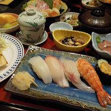 小高い山の上で景色が良かったです。お寿司のコースを前もって予約していたので