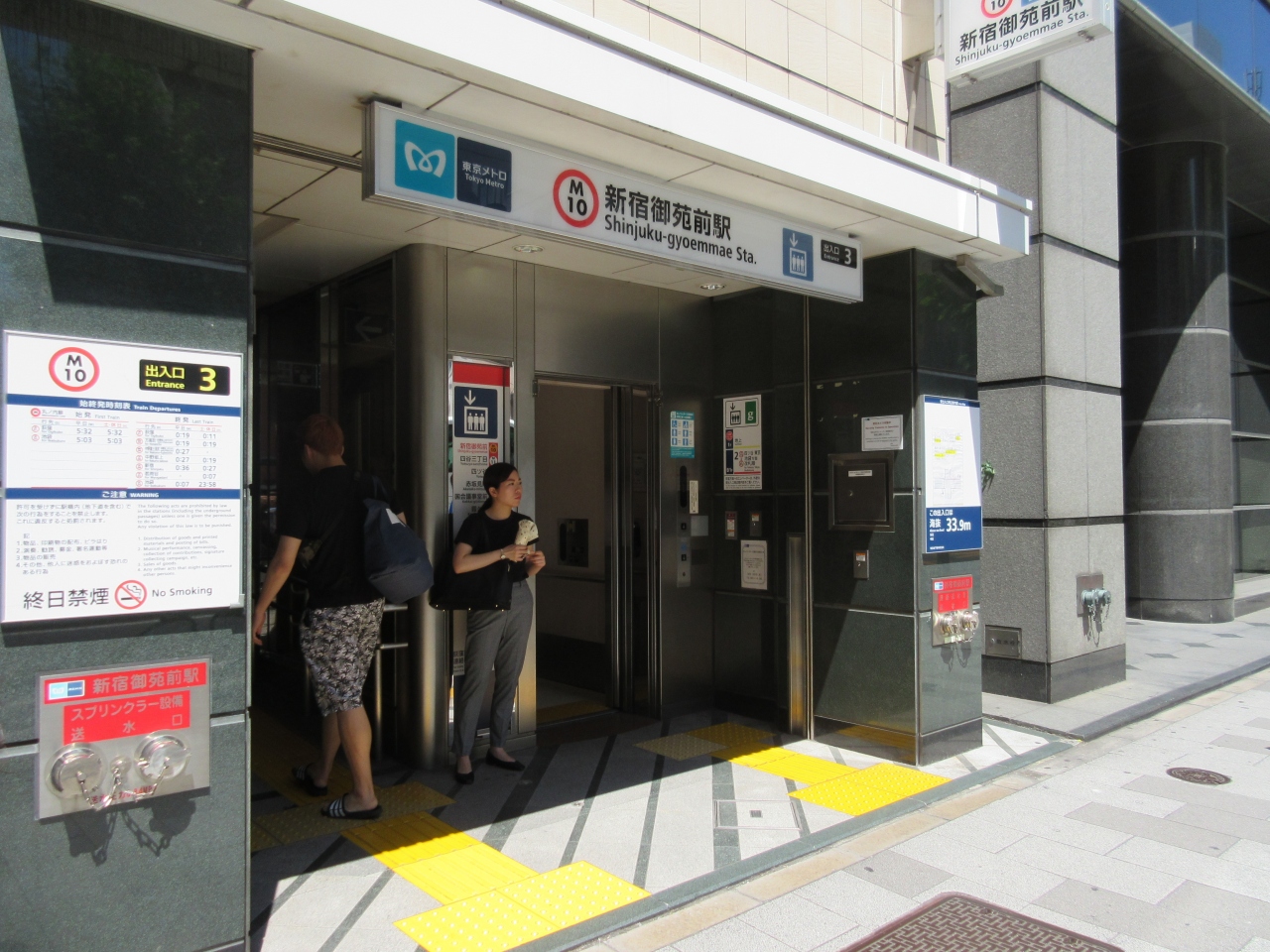 東京メトロ丸の内線の駅・(M10)。新宿駅からだと3駅目となります。ここは駅名の通り、新宿御苑の最寄り駅です。普段はビジネス利用の人達が多く見受けられますが、桜の季節には、それを目的とした利用者が増加します。出口が3か所?、離れていて迷いました。