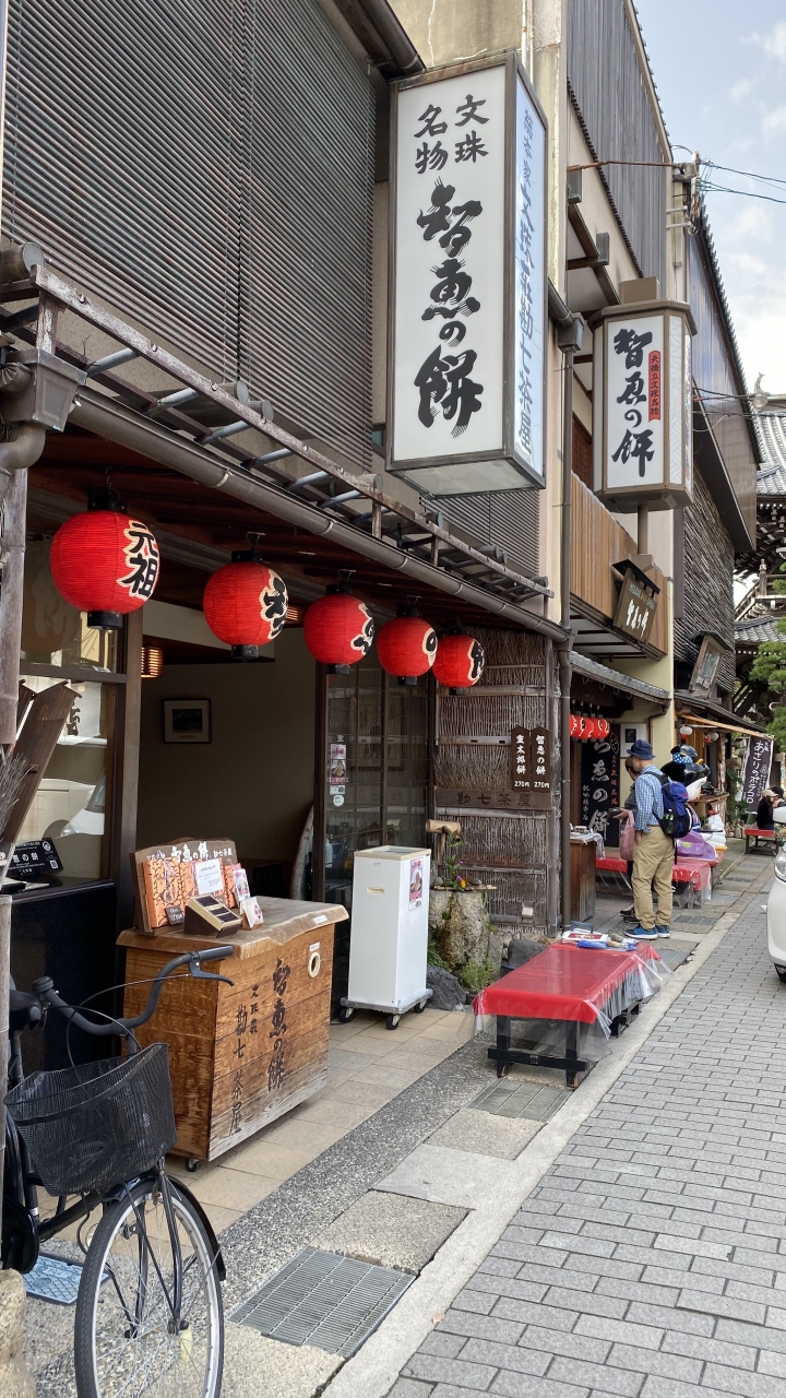 伊勢の赤福、天橋立の智恵の餅という感じの有名なお店です。智恵の餅のが赤福よりもあんこが少ないつくりですが、しっとりしていておいしいです。このお店以外にも似たようなお餅がありますが、智恵の餅勘七茶屋さんのお餅も元祖というだけさすがの味です。