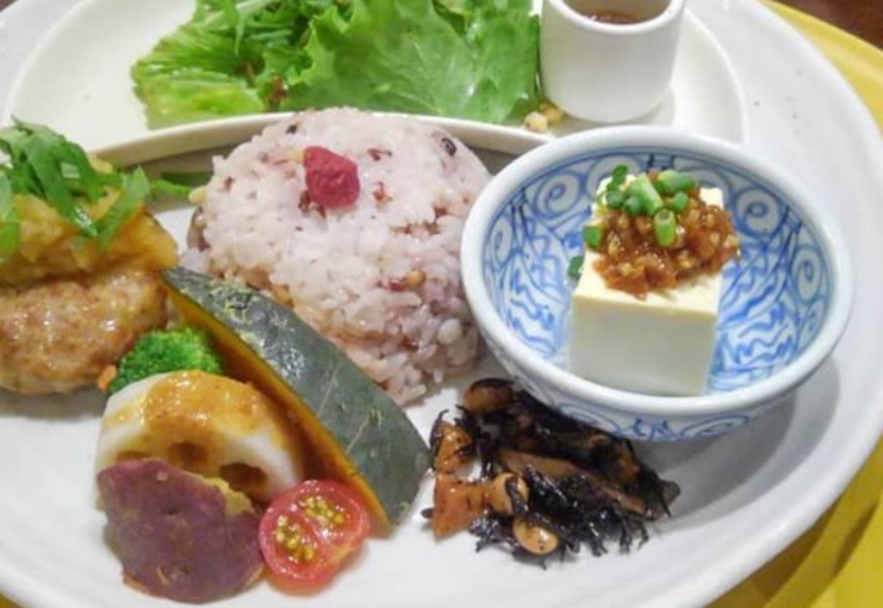 ヘルシーなお野菜たっぷりの定食で、ご飯は五穀米です。おいしくてお値段もお手頃でした。