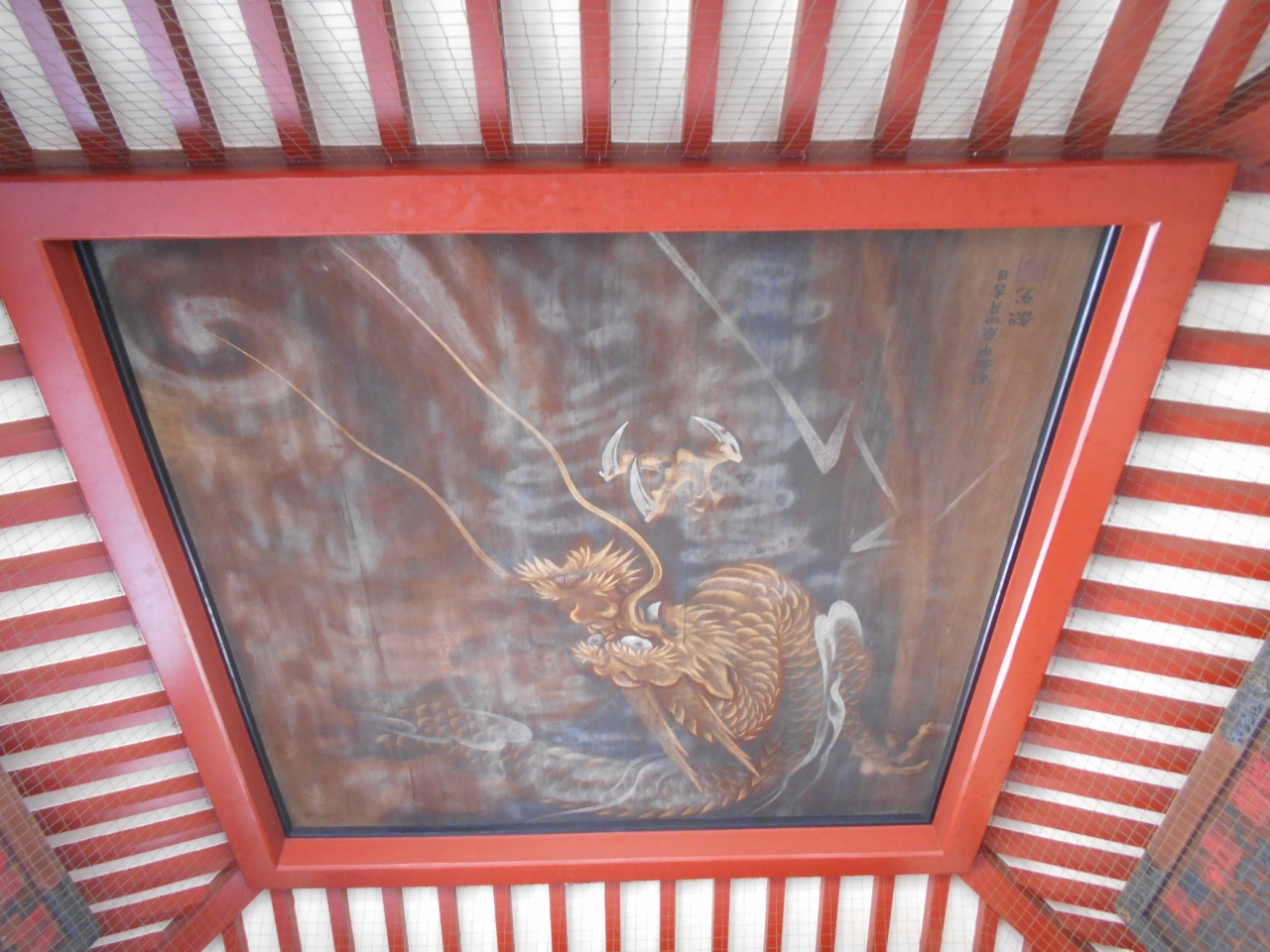 都内最古の寺”浅草寺”の本堂前に建つ御水舎。本堂のお参り前に身を清める場所で観光客で混雑しています。格式ある建物内にあり天井絵が素晴らしいです。昭和39年(1964)奉安の「墨絵の龍」と噴水の中に建つ高村光雲作の「龍神像」は見事です。天井を見上げてください。