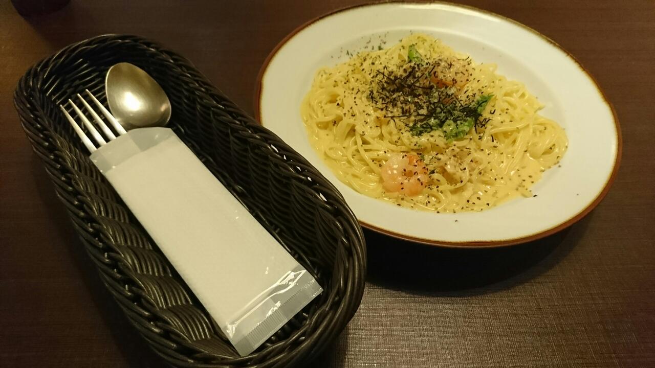 早めの夕食で利用しました。メニューが、日本語と英語、ニンニクを使っていたらアイコン表示され、分かりやすかったです。ソースごとに分類してあり、その日の気分で選びやすいと感じました。海老とアスパラのクリームソースにしましたが、ペッパーが効いて美味しかったです