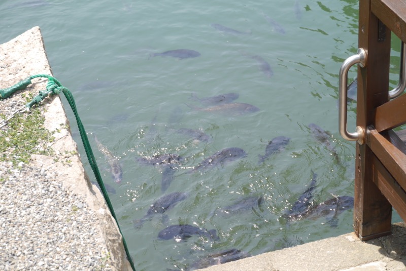 しっかりと餌付けがなされている、よく人馴れした鯛がいます。人がやってくると餌をもらえるかな?と思いゆらゆらと集まってきて、とっても可愛いです。鯛のえさはガチャガチャ式で近くで売られているのでぜひ。船に乗ることもできます。