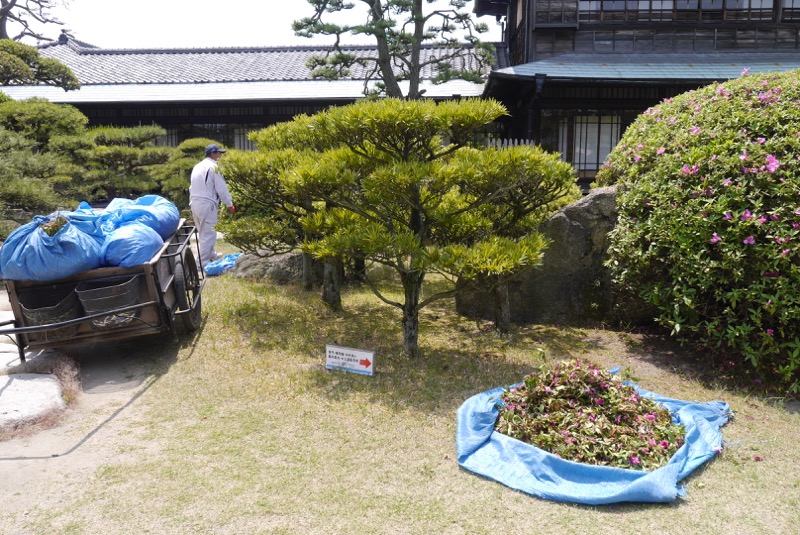 「きれいな風景のなか、その場所をそうじしたり調える人々」というシチュエーションがとても好きなのですが(マニアックな趣向だとも思いますが…)、ちょうどこの建物のお庭を大勢の人たちでつつじの木などの剪定をしているときに訪れることができ、そのさまをぞんぶんに楽しむことができました。