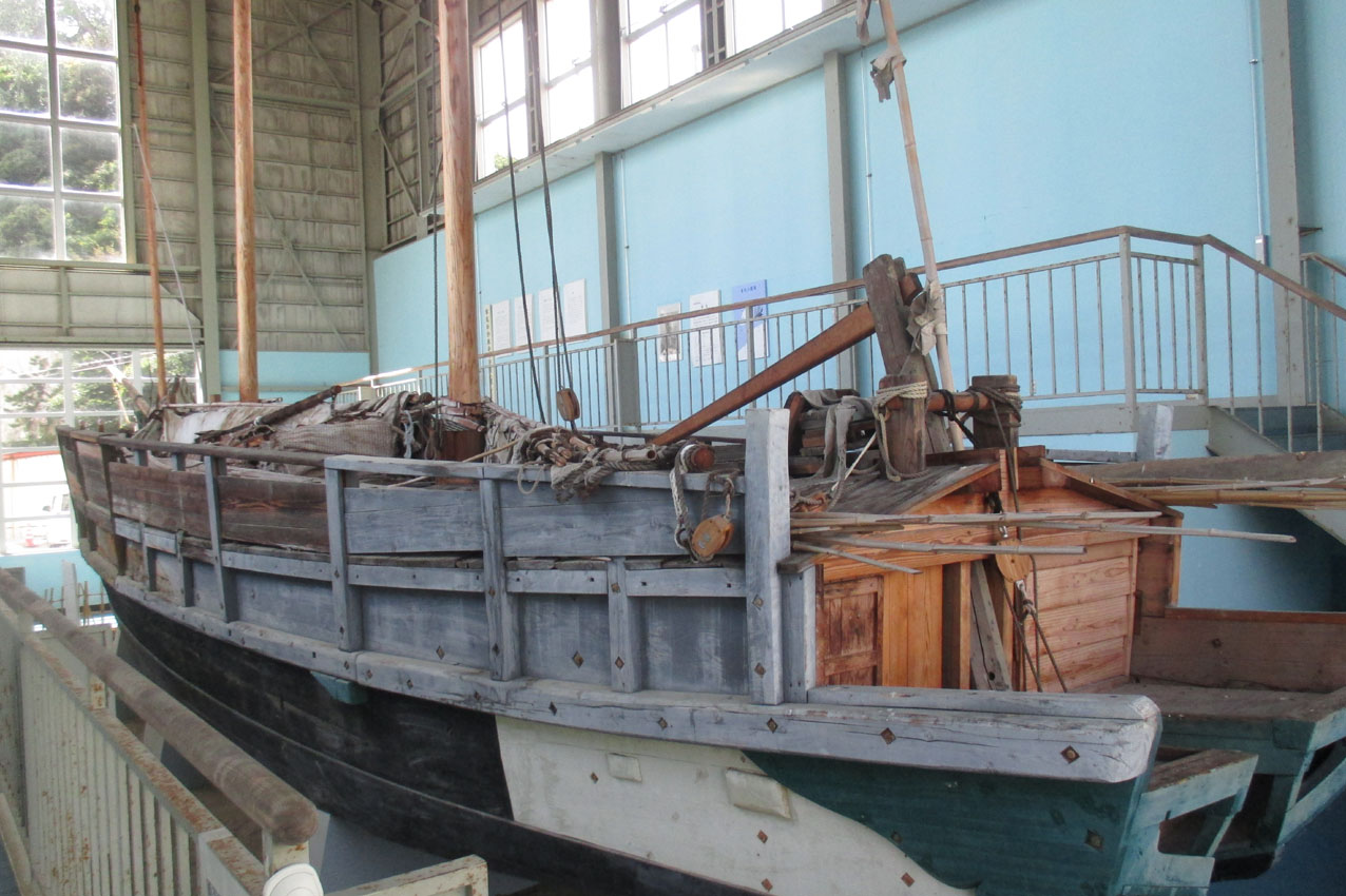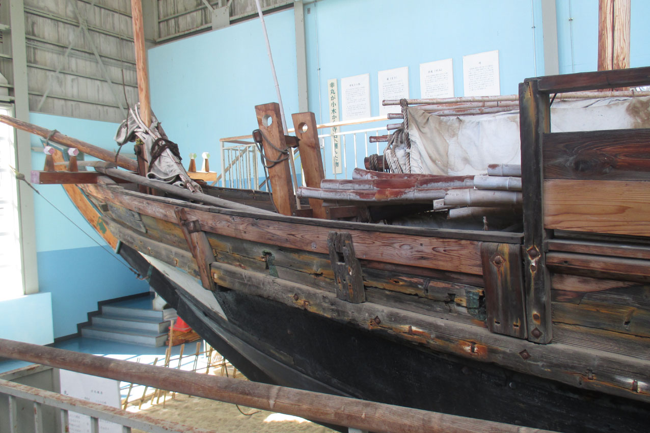 幸丸展示館は力屋観光汽船の駐車場横にありました。この貨物和船・幸丸は本州の寺泊と佐渡島の小木の間を結んでいたもので、約60年前まで現役で頑張っていたものとのことです。長さは約19m、幅は3.8mだそうです。波穏やかな時は良いでしょうが、少しでも荒れたときはいつ転覆するかと不安感を抱いたのではないでしょうかね。